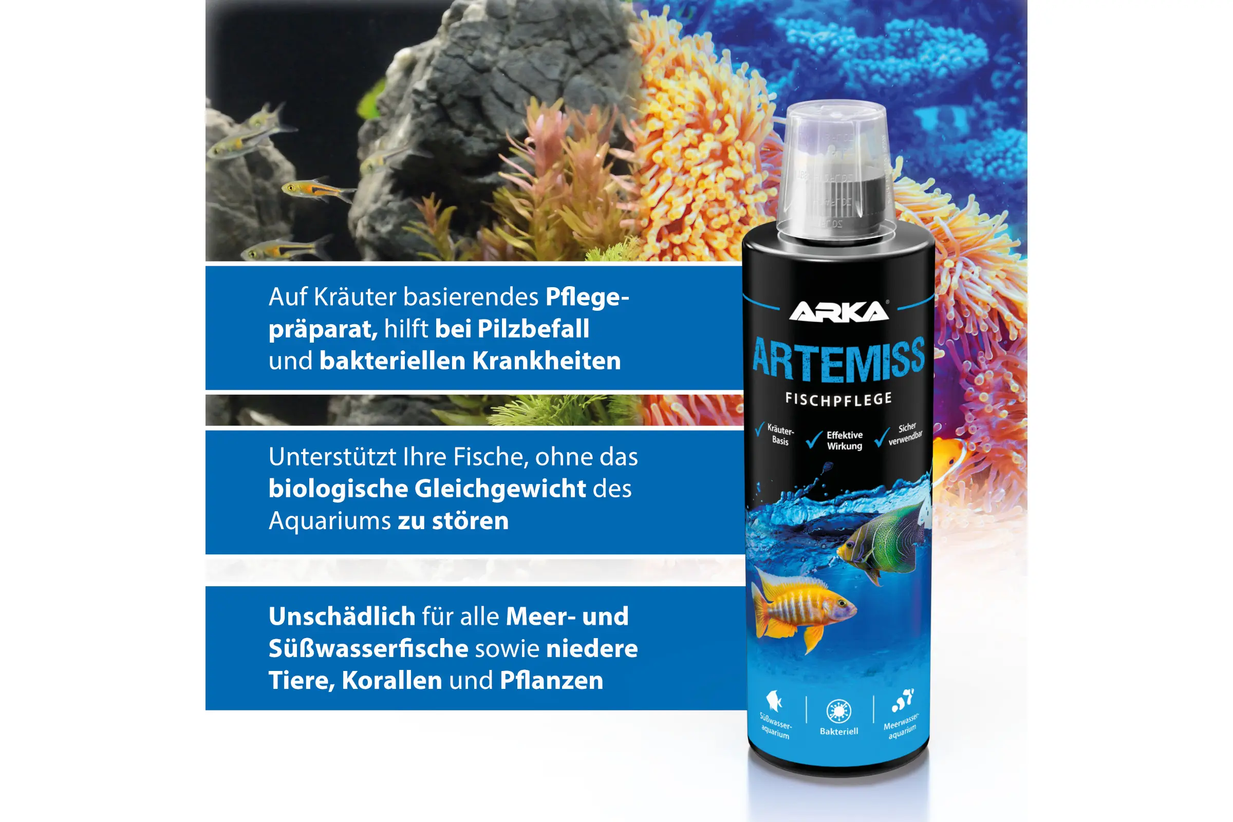 1 Flasche ARKA Artemiss Fischpflege in gewählter Ausführung mit praktischer Dosierhilfe.