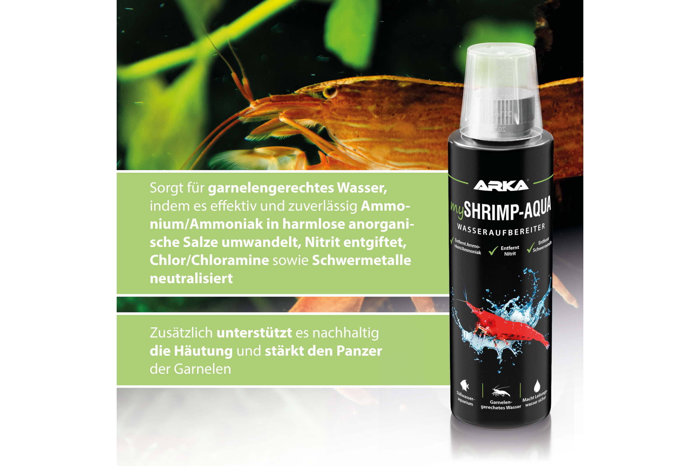 ARKA mySHRIMP-AQUA ist eine sichere Lösung zur Vorbereitung und Stabilisierung von Leitungswasser für Garnelenbecken. Es schützt vor Belastungen, unterstützt die Häutung und ist ideal für kleine wie große Aquarien geeignet.