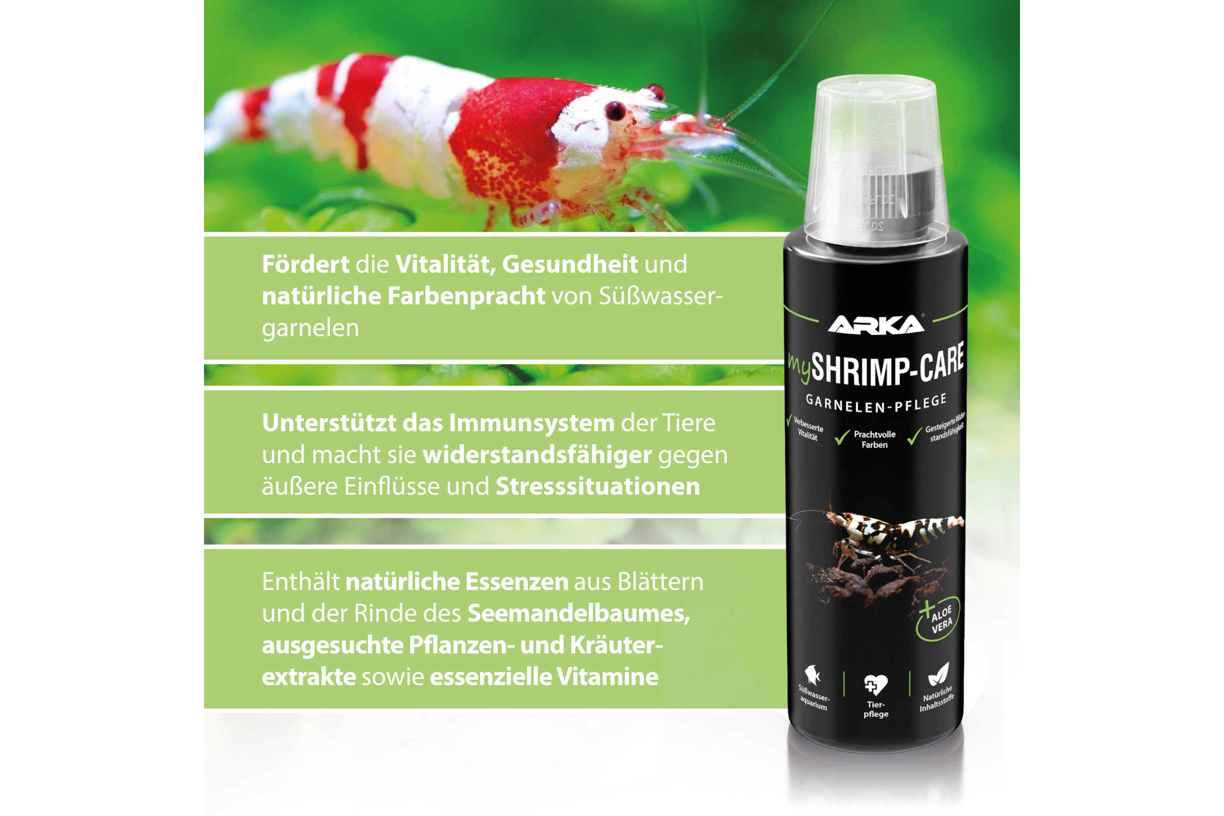 Mit ARKA mySHRIMP-CARE erhalten Garnelen im Aquarium eine gezielte Unterstützung für ihre Gesundheit, Farbentwicklung und Stressresistenz. Die pflanzliche Formulierung wirkt effektiv und schonend – optimal auch für kleine Becken und empfindliche Arten.
