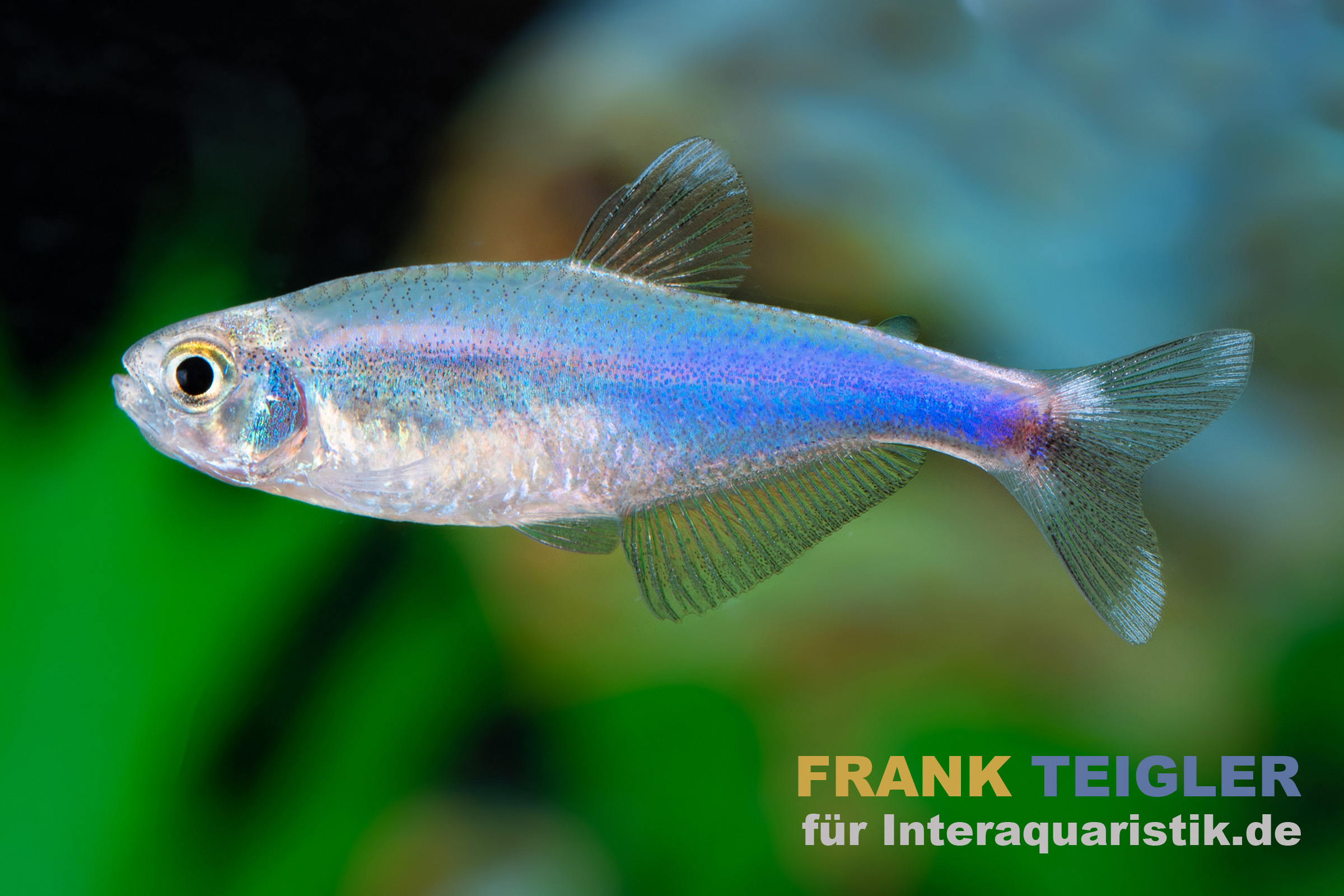 Der Blauer Borki-Salmler (Knodus borki) stammt aus klaren, sauerstoffreichen Gewässern des peruanischen Amazonasgebiets. Dort lebt er in kleinen Schwärmen in Uferzonen mit dichtem Pflanzenbewuchs und feinstrukturierten Bodengründen. Die Art wurde nach dem Aquarianer Bork benannt, der sie erstmals importierte, und wird trotz ihres auffälligen, metallisch-blauen Körperschimmers im Hobby bislang kaum angeboten. Der bläuliche Glanz entsteht durch Lichtreflexion auf durchsichtigen Schuppen und verleiht dem Fisch eine faszinierende Leuchtwirkung, die in weichem Licht besonders gut zur Geltung kommt. Knodus borki zählt zu den kleinbleibenden Salmlerarten und eignet sich ideal für naturnahe Gesellschaftsaquarien. Die systematische Einordnung innerhalb der Familie Characidae ist gesichert, jedoch werden Gattung und Verwandtschaftsverhältnisse noch diskutiert. Im Handel taucht er manchmal als Blauer Perusalmler auf, diese Bezeichnung ist aber falsch und einem anderen ähnlichen Tier zugeordnet, dem Boehlkea fredcochui. Es handelt sich hier um eine komplett andere Art.