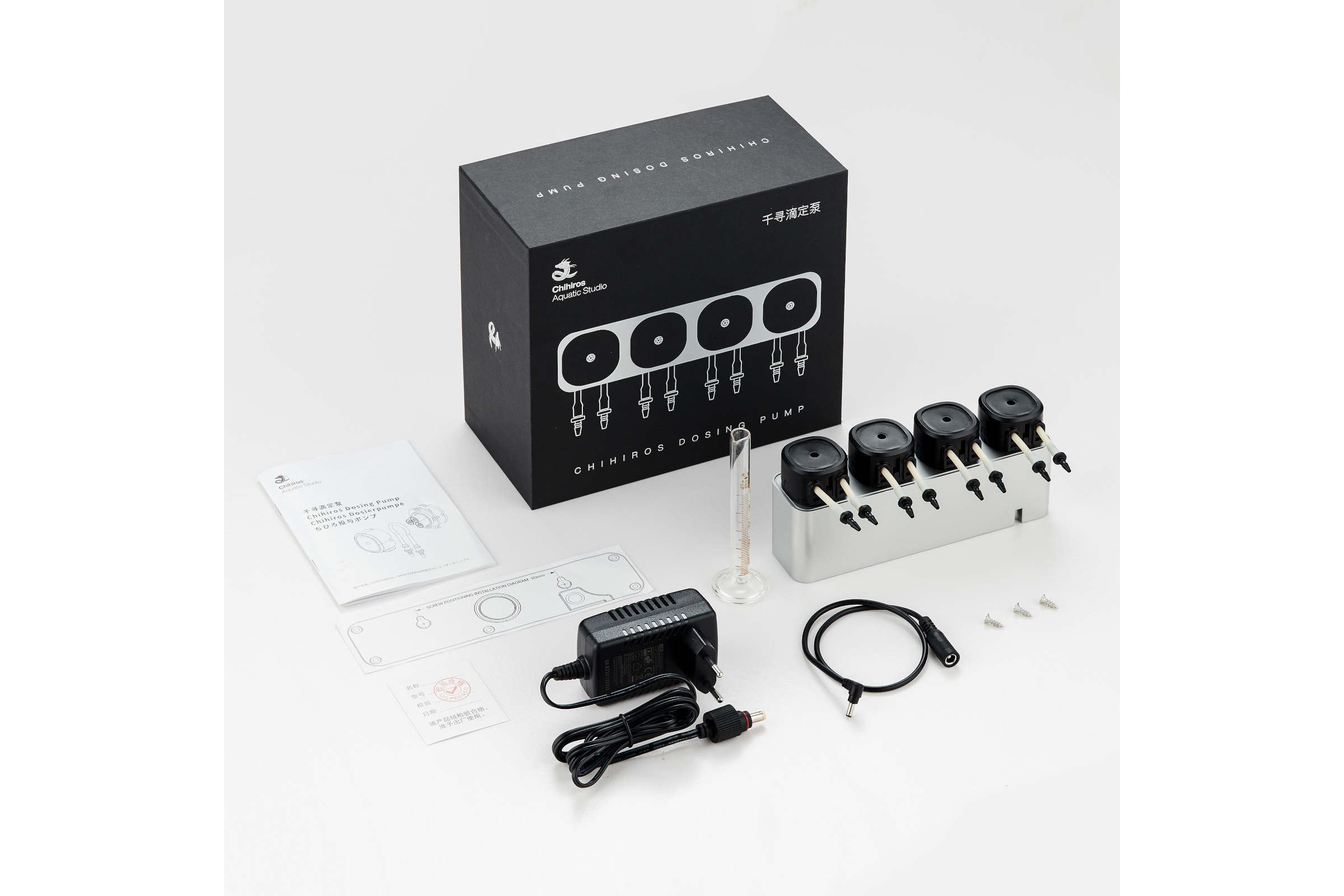 Im Lieferumfang enthalten sind die Chihiros Dosieranlage mit 4 Anschlüssen, ein Netzteil, ein Kalibrierbehälter (Messzylinder) sowie eine Anleitung. Die erforderlichen Dosierflaschen und Schläuche sind separat erhältlich und nicht im Set enthalten.Fazit