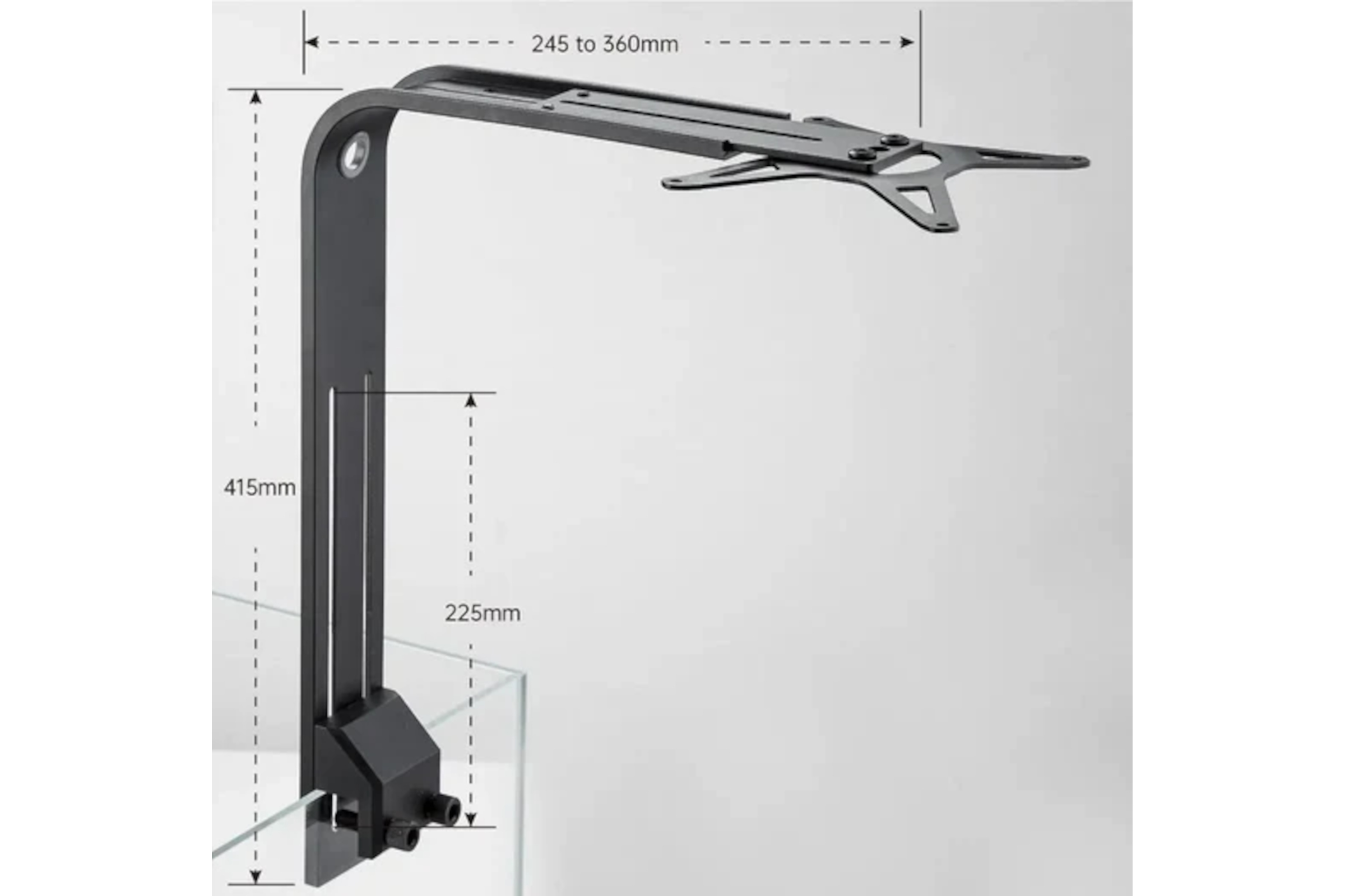 Die Halterung wird seitlich auf den Glasrand des Aquariums aufgesteckt und sorgt dort für eine feste Positionierung der Chihiros Nova 1 Leuchte. Sie eignet sich ideal für rahmenlose Aquarien mit bis zu 25 mm Glasstärke. Die robuste Klemmung verhindert ein Verrutschen der Leuchte und stellt sicher, dass sie dauerhaft exakt über dem Becken bleibt. Besonders bei offenen Aquarien entsteht so ein freier Blick aufs Layout – ganz ohne störende Technik im Vordergrund. Die Halterung ist ausschließlich mit der Nova 1 kompatibel und nicht für andere Serien geeignet.