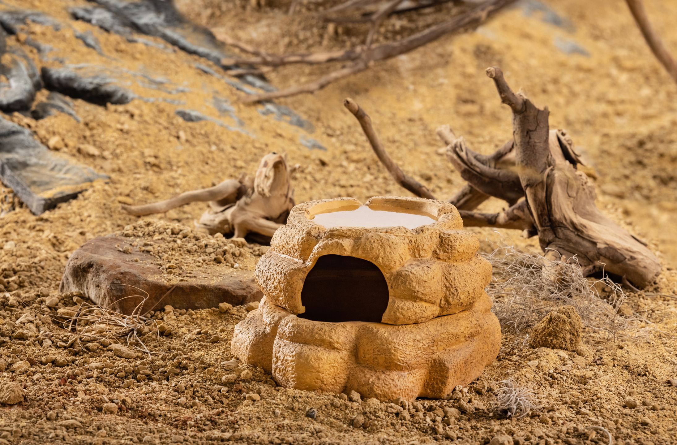 Das spezielle keramische Material nimmt Feuchtigkeit auf und gibt sie langsam wieder ab, wodurch eine stabile Feuchte im Inneren der Höhle entsteht. - Naturgetreue Optik