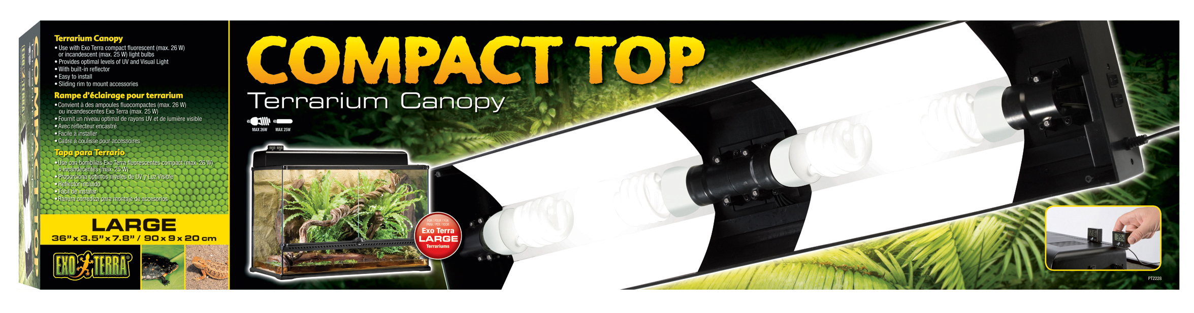 Die Terrarienabdeckung wird einfach auf das passende Exo Terra Glasterrarium aufgesetzt. Sie ist für E27 Lampenfassungen mit einer maximalen Leistung von 26 Watt pro Leuchtmittel konzipiert. Die integrierte Aussparung ermöglicht die unkomplizierte Installation von Zusatzgeräten wie digitalen Thermometern oder Hygrometern, um Klima und Temperatur optimal zu überwachen.