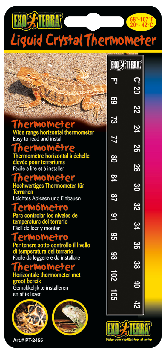 Exo Terra Liquid Crystal Thermometer sorgt für eine zuverlässige Messung der Temperatur in Ihrem Aquarium, Terrarium oder Vivarium. Das leicht ablesbare, breite horizontale Display ermöglicht eine übersichtliche Kontrolle. Dank flexibler Anbringung können Sie das Thermometer ganz einfach innen oder außen montieren und so optimal auf Ihre Bedürfnisse abstimmen.