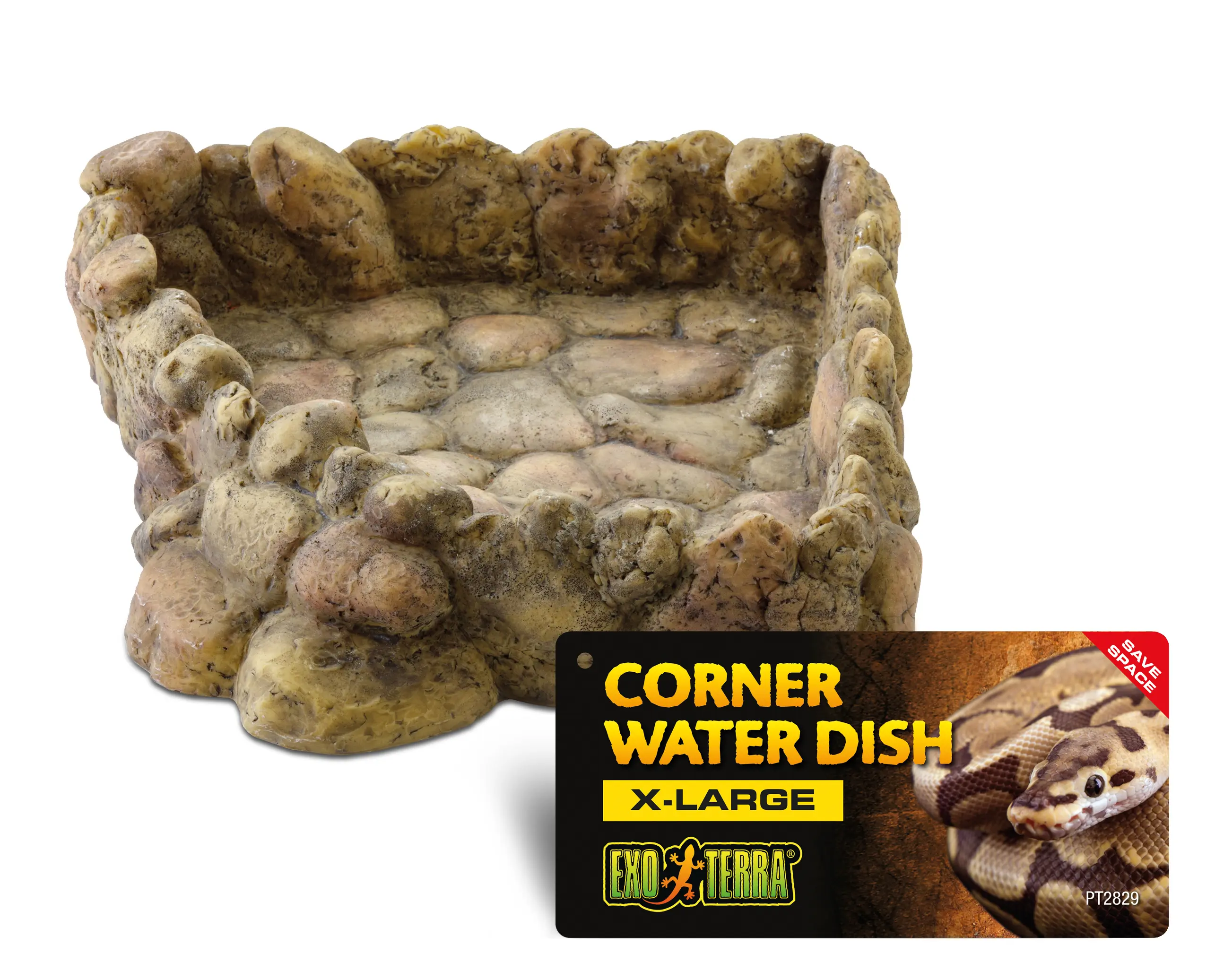 Exo Terra Corner Water Dish ist eine extra große Eck-Wasserschale für Reptilien, die durch ihr natürliches Kieselstein-Design in jedes Terrarium passt. Die spezielle Form nutzt den Platz in der Ecke optimal aus, eignet sich besonders für größere Terrarien und bietet Ihren Tieren stets frisches Wasser.