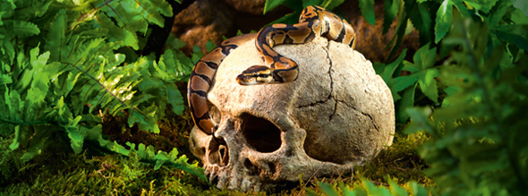 Realistische Terrariendekoration in Schädeloptik