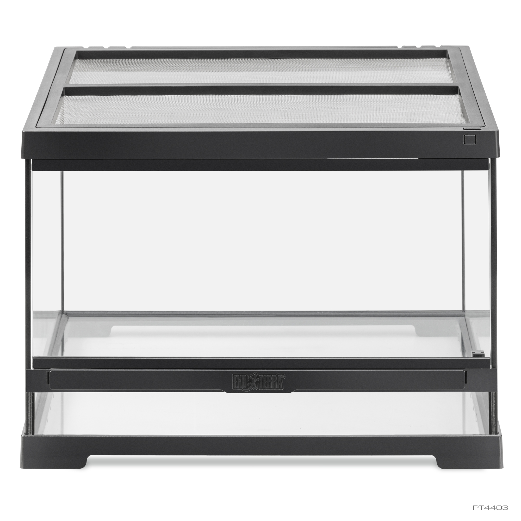Exo Terra Pro Terrarium 45x45x30cm bietet einen sicheren, funktionalen Lebensraum für Reptilien, Amphibien sowie Wirbellose. Dank ausgeklügeltem Design und innovativen Details eignet es sich perfekt sowohl für Aquaristik-Einsteiger als auch für erfahrene Tierhalter. Die große Glasfront sorgt für eine hervorragende Sicht auf Ihre Tiere, während das anpassbare Belüftungssystem sowie die abnehmbare Netzgitterabdeckung für ideale Haltungsbedingungen garantieren.