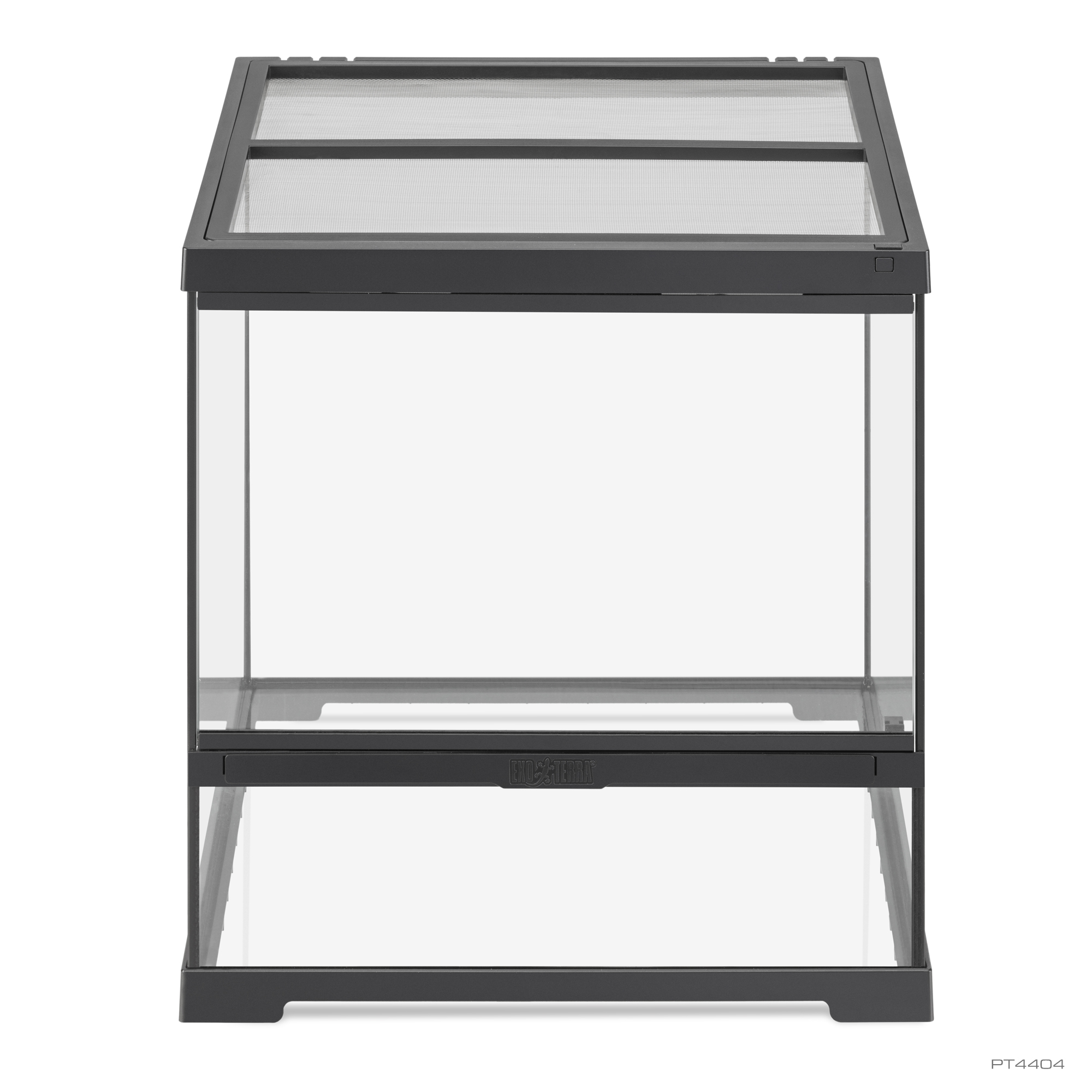 Exo Terra Pro Terrarium bietet einen modernen und sicheren Lebensraum für Ihre Reptilien, Amphibien oder Wirbellosen. Die großzügige Glasscheibe verbessert nicht nur die Sicht auf Ihre Tiere, sondern schafft auch beste Voraussetzungen zur Gestaltung individueller Mikrohabitate. Dank verschließbarer Tür und abnehmbarer Netzgitterabdeckung genießen Sie maximale Sicherheit und eine einfache Wartung. Das einstellbare Belüftungssystem verhindert Kondenswasser und sorgt stets für ein angenehmes Klima im Terrarium.
