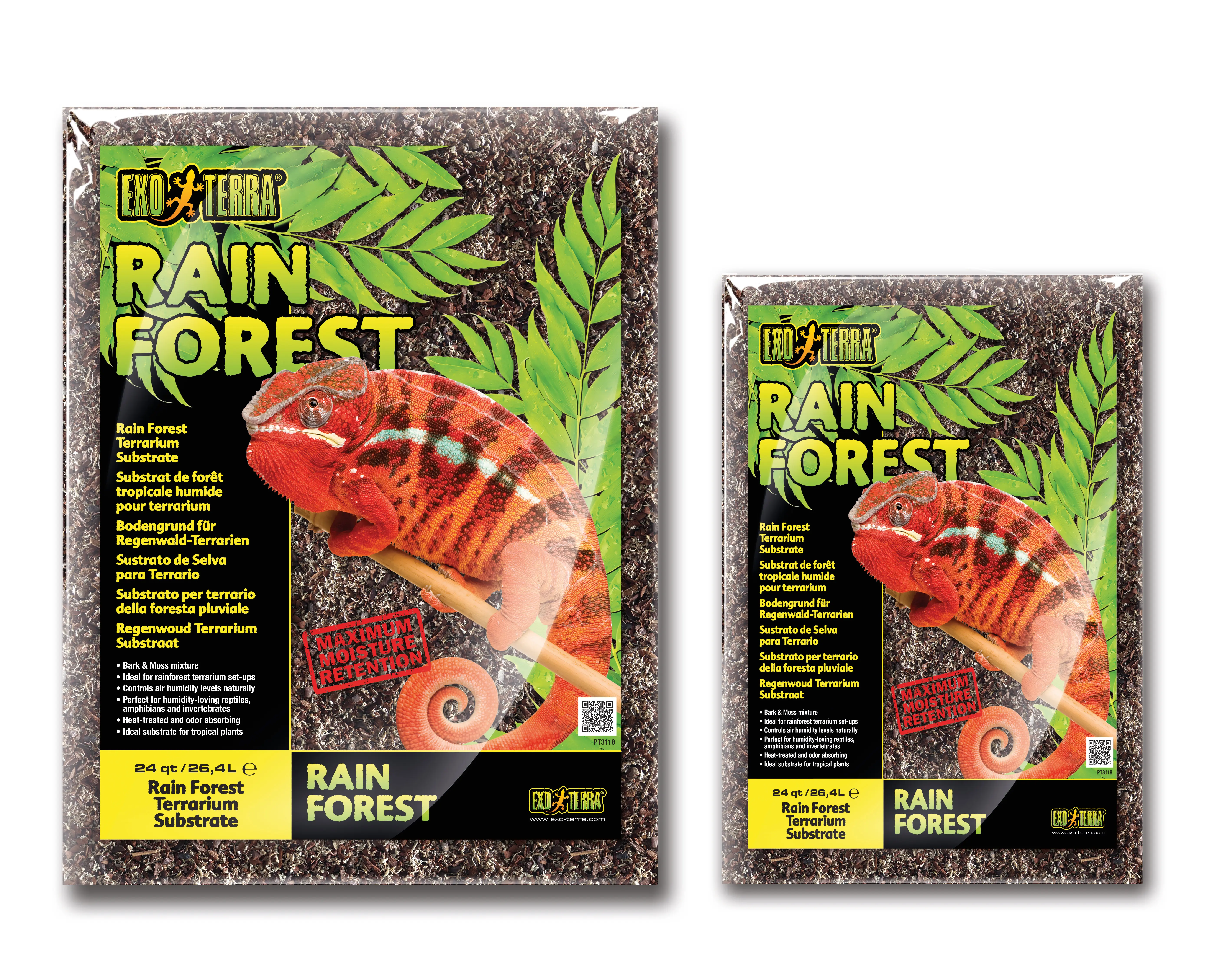 Exo Terra Rain Forest ist ein hochwertiges Substrat, das zu 100% aus natürlichen Materialien wie Strandkiefer und Torfmoos besteht. Es wurde speziell entwickelt, um die Bedingungen eines Regenwald-Biotops in Terrarien nachzubilden und ist besonders für feuchtigkeitsliebende Reptilien, Amphibien sowie Wirbellose geeignet. Das Substrat unterstützt eine optimale Luftfeuchtigkeit, fördert ein gesundes Klima und wirkt zudem geruchsabsorbierend. Dank seiner Wärmebehandlung ist es besonders hygienisch und sicher für die Tierhaltung.