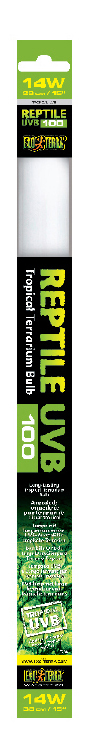 Exo Terra Reptile UVB 100 sorgt für eine artgerechte Umgebung in Ihrem Terrarium. Die T8-Leuchtstoffröhre bietet Ihren tropischen und subtropischen Reptilien die optimale Menge an UVB-Strahlung, die sie für einen gesunden Kalziumstoffwechsel benötigen. Die 14 Watt starke, 38 Zentimeter lange Röhre erzeugt Lichtbedingungen, die denen schattiger Regenwälder ähneln und gewährleistet so das Wohlbefinden Ihrer Tiere. Zusätzlich fördert das ausgestrahlte UVA-Licht Appetit, Aktivität und Fortpflanzung. Besonders praktisch: Die längere Röhre kann auch zur Beleuchtung mehrerer Terrarien genutzt werden.