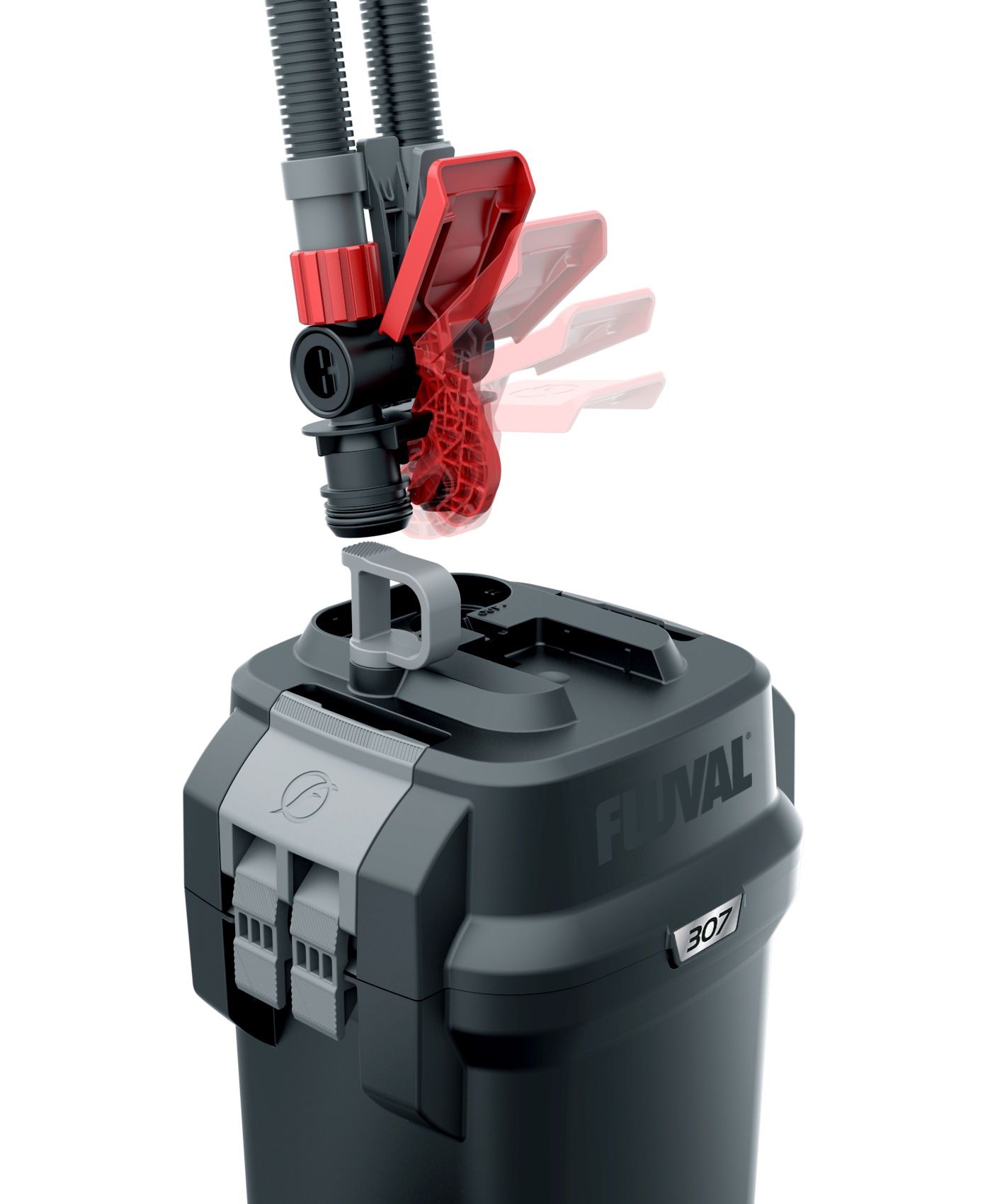Der Fluval 307 Außenfilter lässt sich besonders schnell und unkompliziert installieren. Dank des ergonomischen AquaStop-Ventils und der verbesserten Selbstansaugung gelingt die Inbetriebnahme mühelos, auch wenn der Filter in einem Aquarienschrank steht. Die Medienkörbe können mit nur einem Handgriff entnommen werden, was die Wartung erheblich vereinfacht.