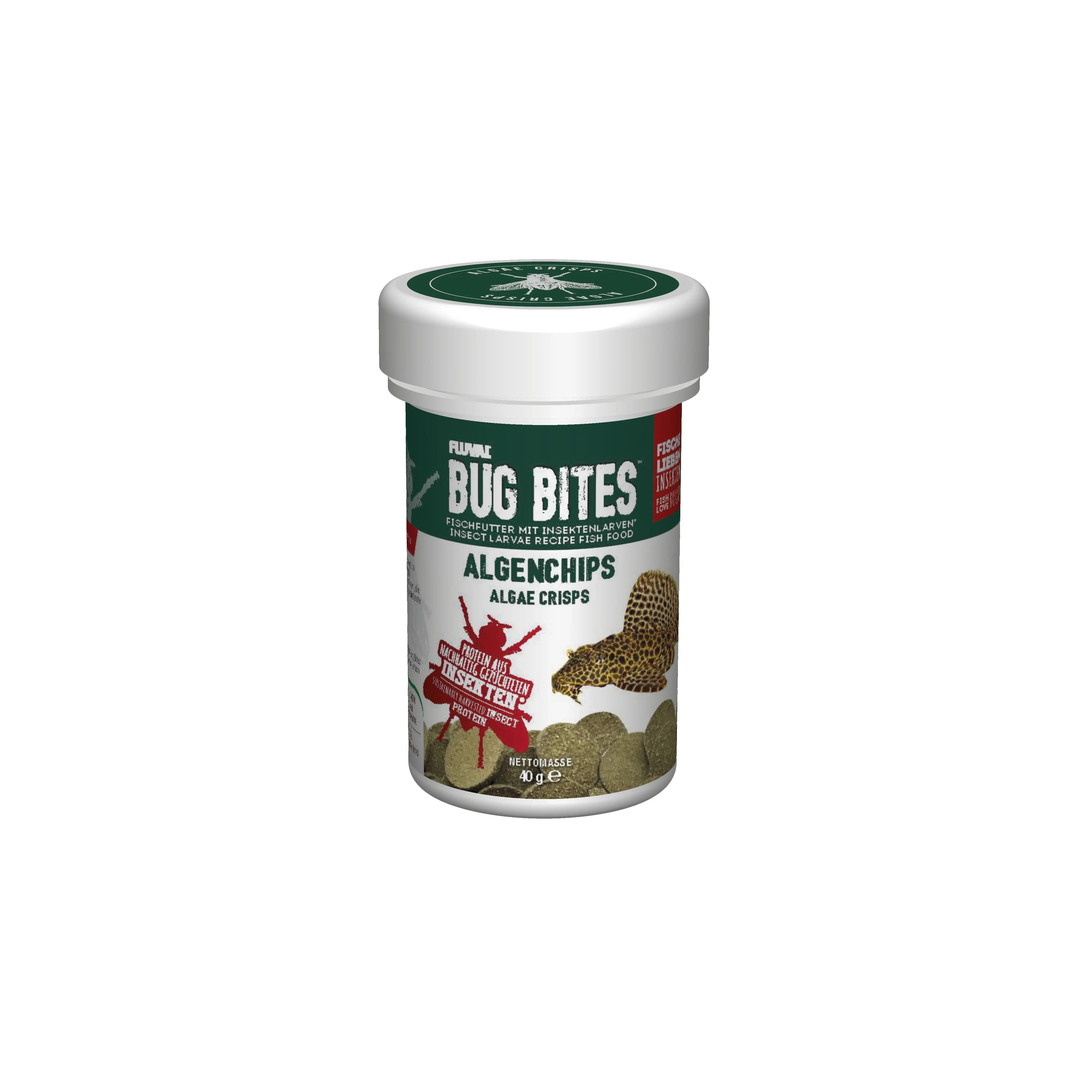 Fluval Bug Bites Algenchips sind ein hochwertiges Hauptfutter für am Boden fressende Zierfische wie Welse, Plecos und Ancistrus. Die Algenchips enthalten bis zu 25 Prozent Larven der Schwarzen Soldatenfliege, was dem natürlichen, insektenbasierten Nahrungsspektrum Ihrer Fische entspricht. Ausgewählte Zutaten wie hawaiianische Spirulina und Kelp liefern wichtige Omega 3 und 9 Fettsäuren und unterstützen somit ein vitales, kräftiges Erscheinungsbild, gesunde Haut und widerstandsfähige Flossen. Die Chips werden extra langsam aufgeweicht, damit sich Ihre Fische wie in der Natur längere Zeit am Boden damit beschäftigen können. Für ein natürliches Fressverhalten und eine artgerechte Ernährung – komplett ohne künstliche Zusätze.