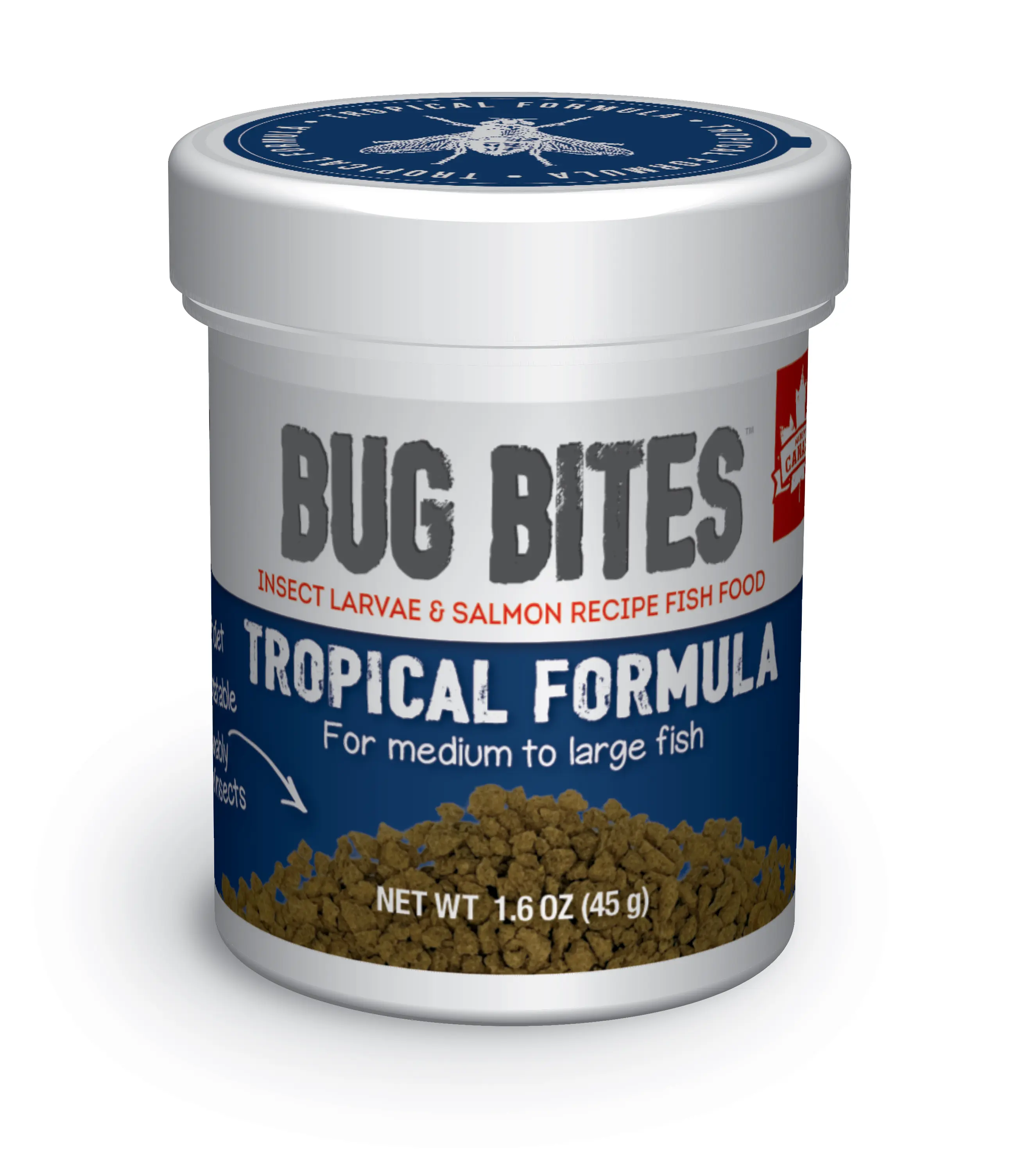 Bug Bites Tropical Granules bieten Ihren mittleren bis großen tropischen Fischen eine hochwertige, proteinreiche Ernährung auf Basis von Schwarzer Soldatenfliegenlarven. Mit bis zu 40 Prozent Insektenanteil orientiert sich dieses Futter an der natürlichen Ernährungsweise vieler Aquarienfische. Sorgfältig ausgewählter Lachs liefert wertvolle Omega 3 und Omega 6 Fettsäuren, die das Erscheinungsbild Ihrer Fische unterstützen und ihre Gesundheit fördern. Durch die langsam sinkenden Granulate eignet sich das Futter ideal für verschiedene Fütterungstiefen – optimal für Arten wie Neonsalmler, Guppys und Cichliden. Die Rezeptur ist frei von künstlichen Zusatzstoffen, leicht verdaulich und enthält alle notwendigen Vitamine und Mineralien für eine vollständige und ausgewogene Ernährung.