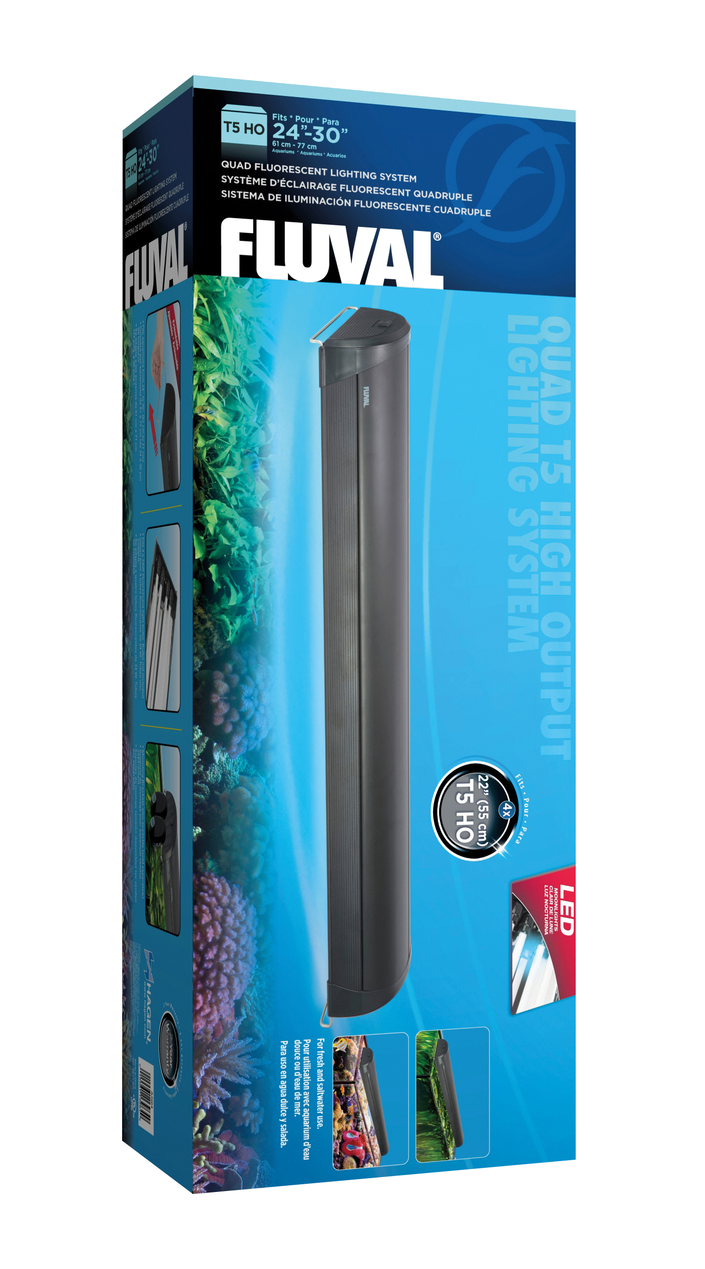 Leistungsstarkes Licht für Süß- und Meerwasseraquarien: Der Fluval T5 HO Vierfach Lichtbalken mit einer Länge von 61 cm eignet sich ideal zur optimalen Ausleuchtung und sorgt für ein gesundes Pflanzen- oder Korallenwachstum. Dank des hochglanzverspiegelten Aluminiumreflektors nutzen Sie das gesamte Lichtpotenzial effizient aus. Einstellbare blaue LEDs bieten zusätzlich eine entspannte Nachtbeleuchtung und setzen Ihr Aquarium optimal in Szene.