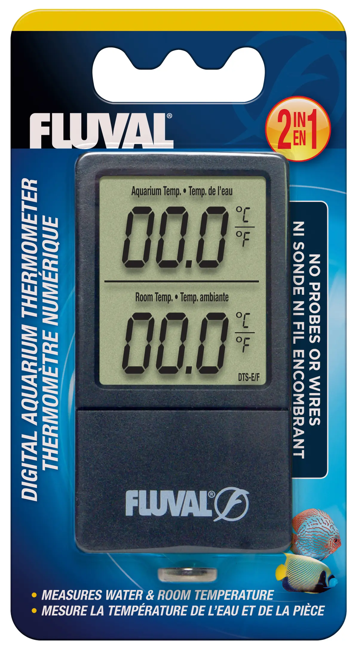 Fluval Digitalthermometer bietet eine fortschrittliche, kabellose Lösung zur Messung der Wasser- und Raumtemperatur in Ihrem Aquarium. Dank des übersichtlichen LCD-Displays haben Sie stets beide Werte im Blick. Das Thermometer eignet sich sowohl für Süßwasser- als auch Meerwasseraquarien und überzeugt durch seine präzise Messgenauigkeit bis auf 1 Grad Celsius. Mit der kabellosen Technologie stört kein unansehnliches Kabel die Optik Ihres Aquariums – für eine einfache und aufgeräumte Anwendung.