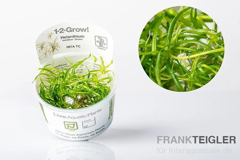 Diese Pflanze eignet sich ideal für den Vordergrund im Aquarium. Mit einer Höhe von etwa 3-10 cm bildet sie dichte Teppiche und verleiht dem Aquarium einen natürlichen "Rasen"-Effekt. Sie kann auch als Bodendecker in Nano-Aquarien verwendet werden. Helanthium tenellum "Green" benötigt ausreichend Platz, um ihre Ausläufer zu verbreiten, und sollte in lockeren Bodengrund gepflanzt werden.
