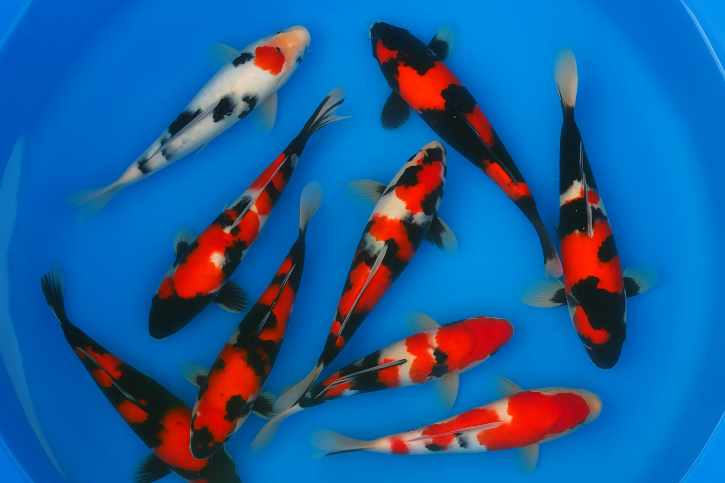 Diese Tiere stammen aus sorgfältig geführten Elterntierlinien und werden auf Qualität, Kontrast und Farbintensität selektiert. Tosai bezeichnet ein Jungtier, das noch reichlich Entwicklungspotenzial besitzt. Besonders bei Showa-Kois verändert sich die Farbverteilung im Laufe der Jahre – schwarze Zeichnung tritt oft erst mit zunehmendem Alter deutlicher hervor.