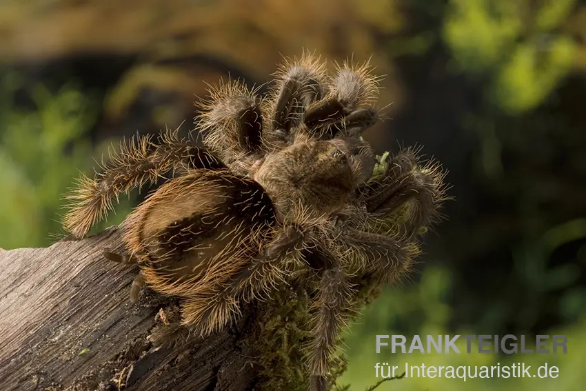 Die weiblichen Kraushaar-Vogelspinnen erreichen eine Länge von bis zu 16 cm. Männchen bleiben etwas kleiner.