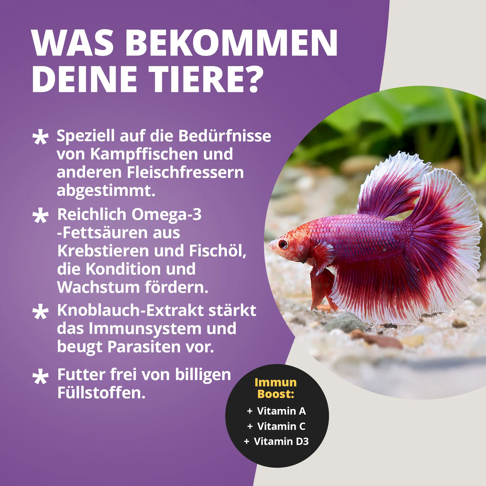 - Speziell abgestimmtes Granulat für Kampffische und carnivore Zierfische