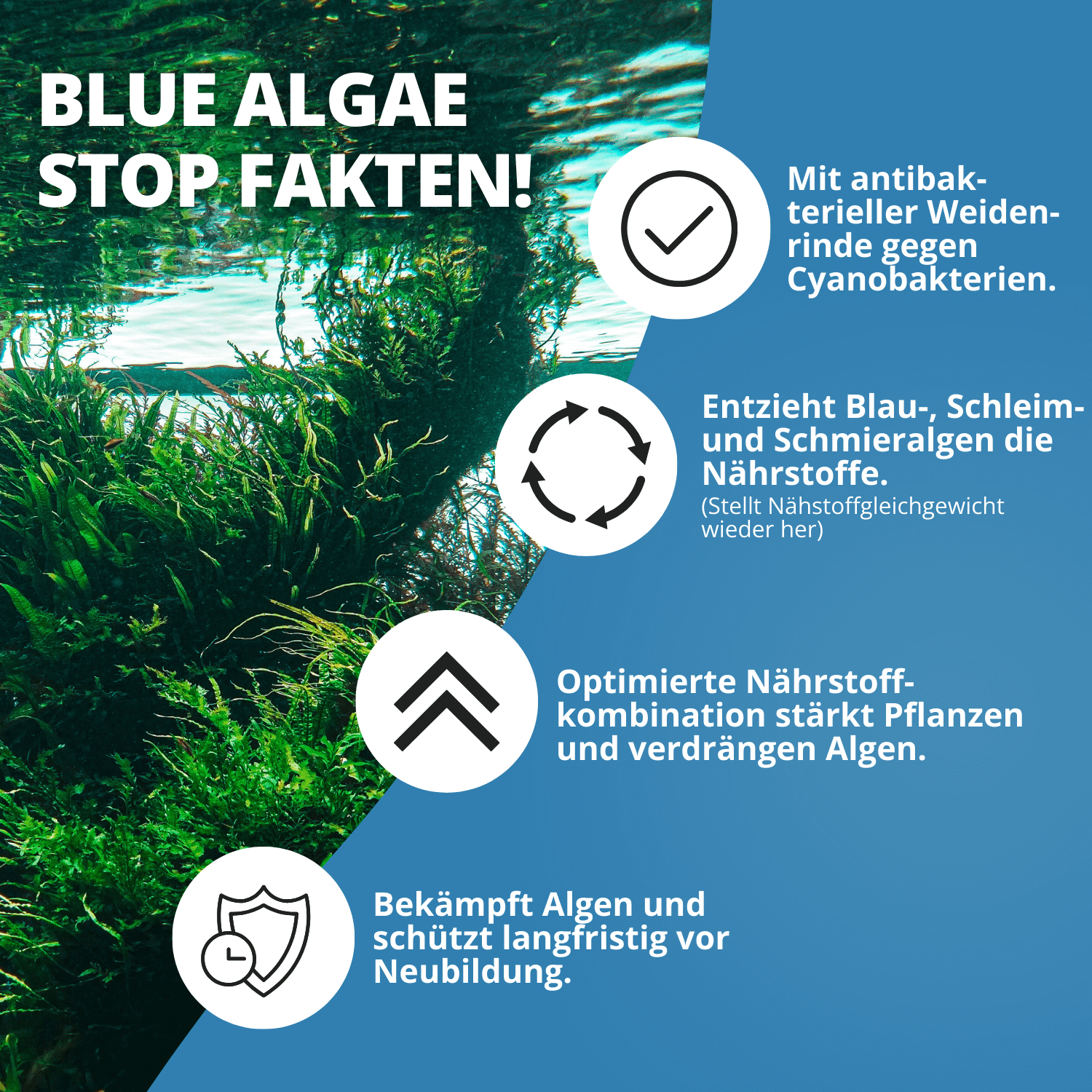 - Wirkt vorbeugend und bekämpfend gegen Blaualgen, Schmieralgen & Schleimalgen