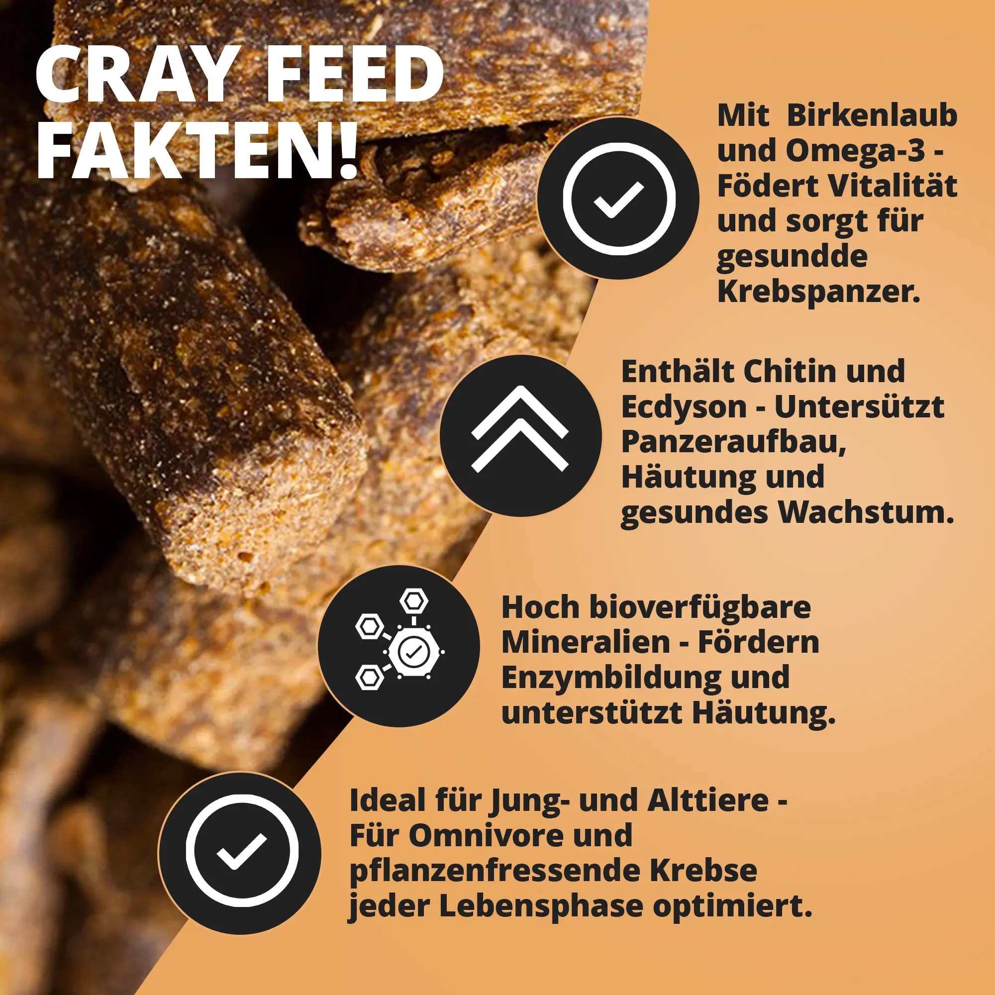 NatureHolic Crayfeed ist ein speziell entwickeltes Alleinfutter für Süßwasserkrebse, das eine ausgewogene Mischung aus tierischen und pflanzlichen Bestandteilen liefert. Das Futter unterstützt auf natürliche Weise Häutung, Wachstum und Fortpflanzung und verzichtet dabei vollständig auf minderwertiges Tier- oder Fischmehl. Hochwertige Inhaltsstoffe, darunter Insekten, Krill, Krebstiere und Birkenblätter, orientieren sich am natürlichen Nahrungsspektrum der Krebse.