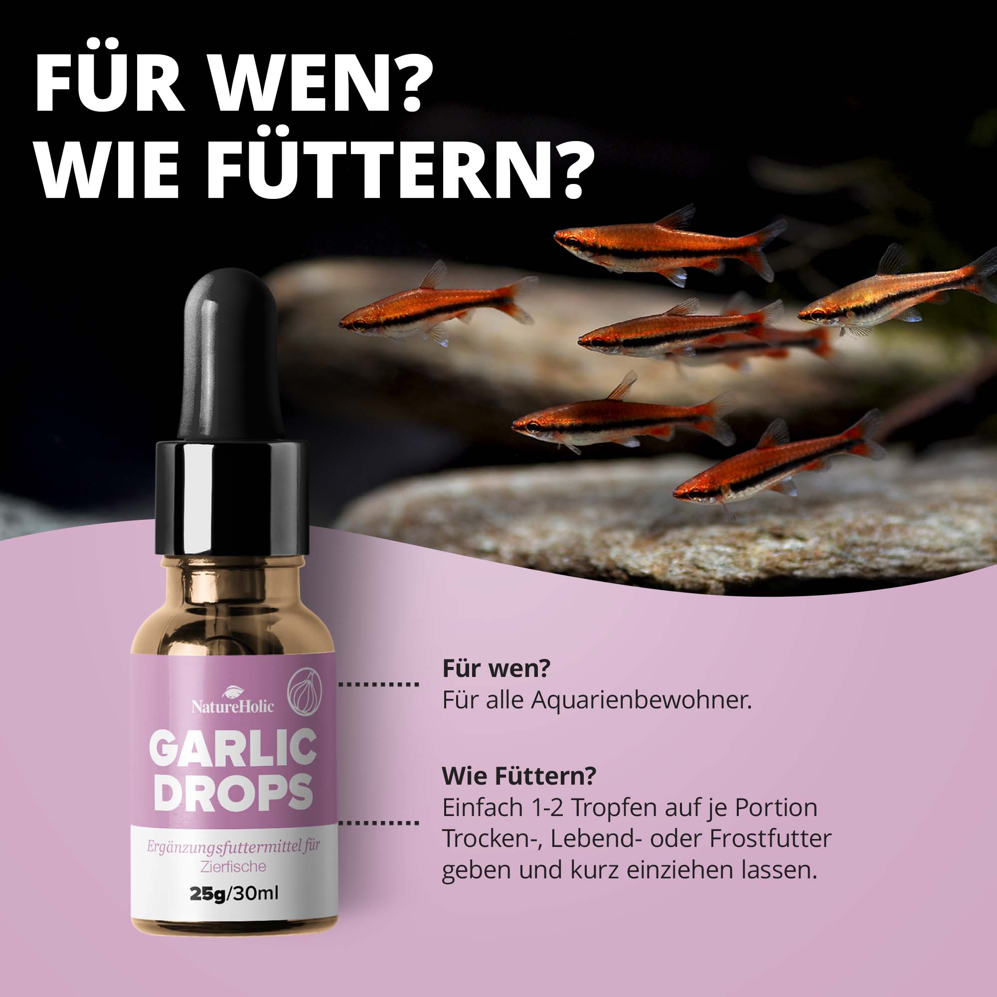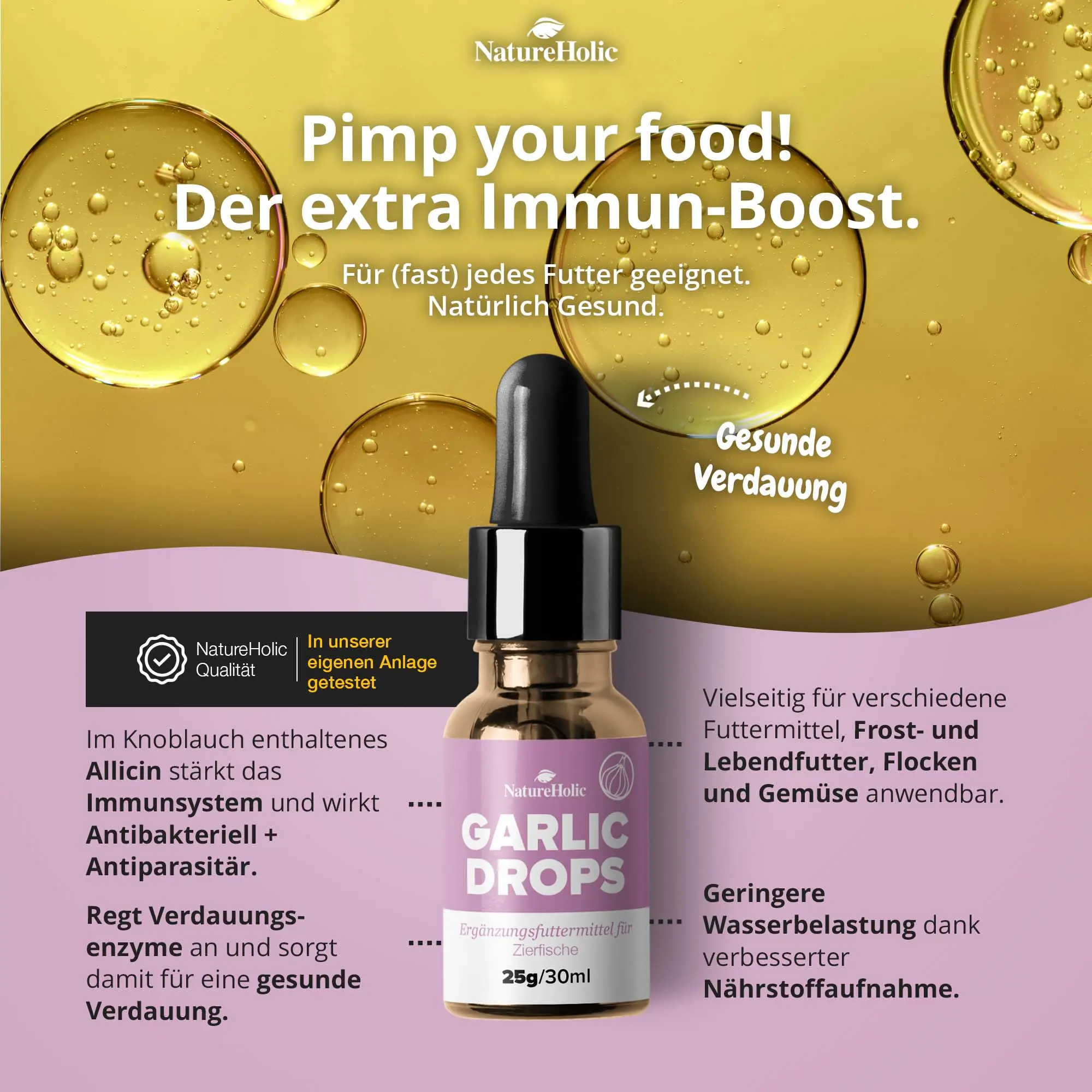 NatureHolic Garlic Drops, Fischfutter Zusatz für ein starkes Immunsystem, 30 ml