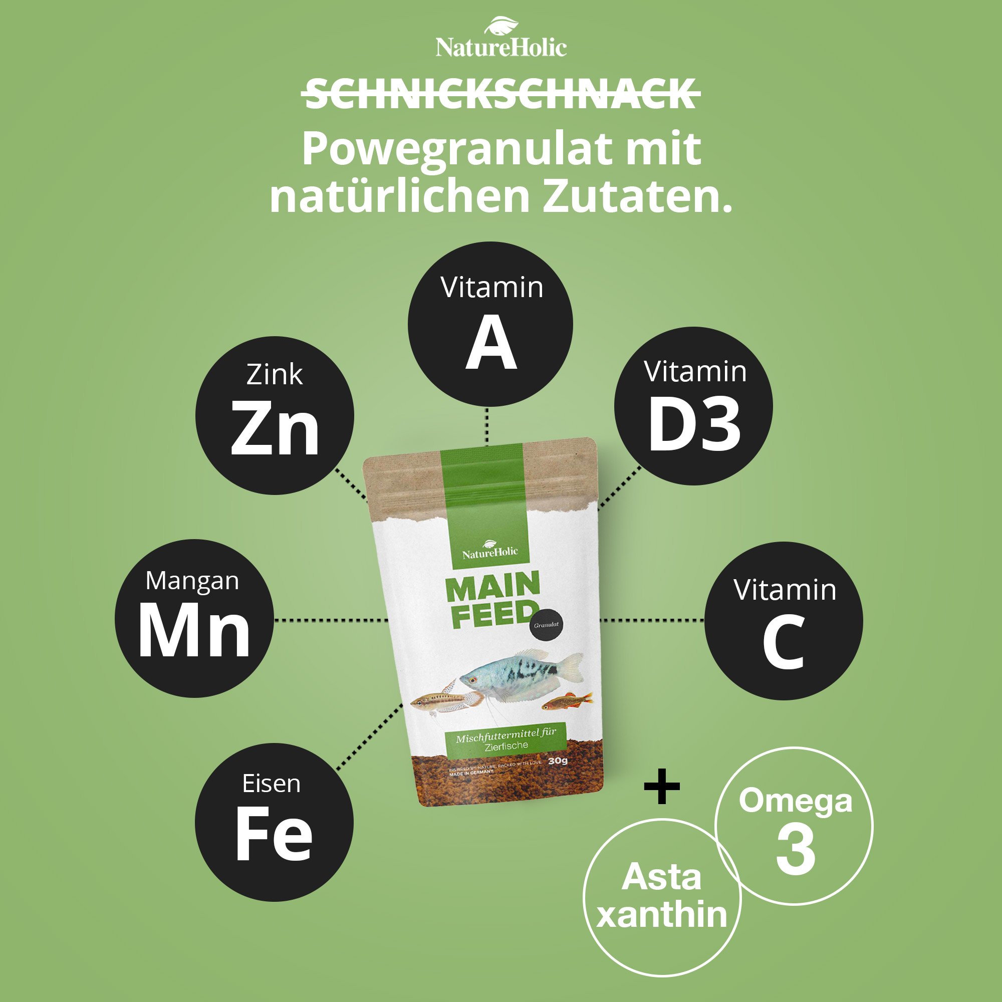 NatureHolic Mainfeed Granulat, Zierfisch Hauptfutter, 30 g