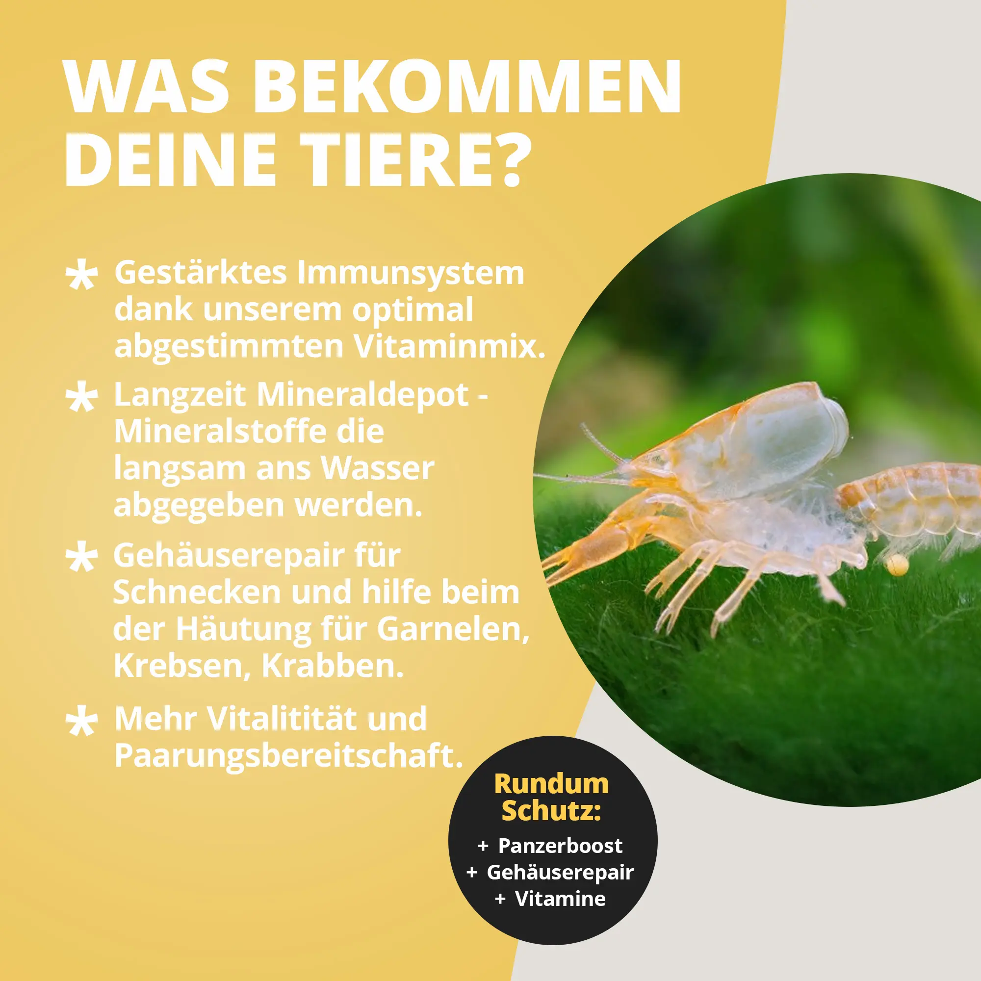 - Sorgt für gesunde Häutung, feste Schalen und kräftige Schneckenhäuser