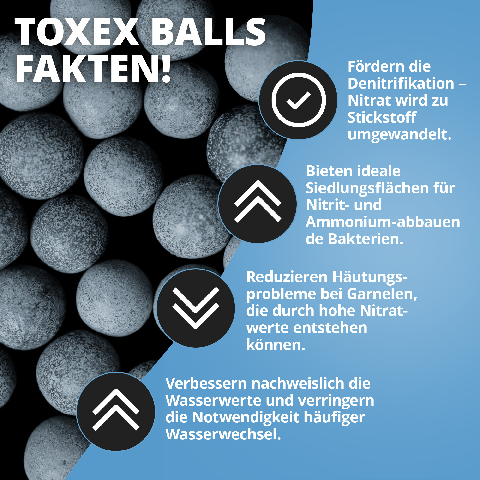 NatureHolic ToxEx Balls bestehen aus einem Mix feiner Spezialkeramik, die über 30 essentielle Mineralien und Spurenelemente enthält. Diese sorgen für eine stabile Wasserqualität, fördern die Besiedelung durch Filterbakterien und unterstützen die Vitalität von Fischen und Wirbellosen.