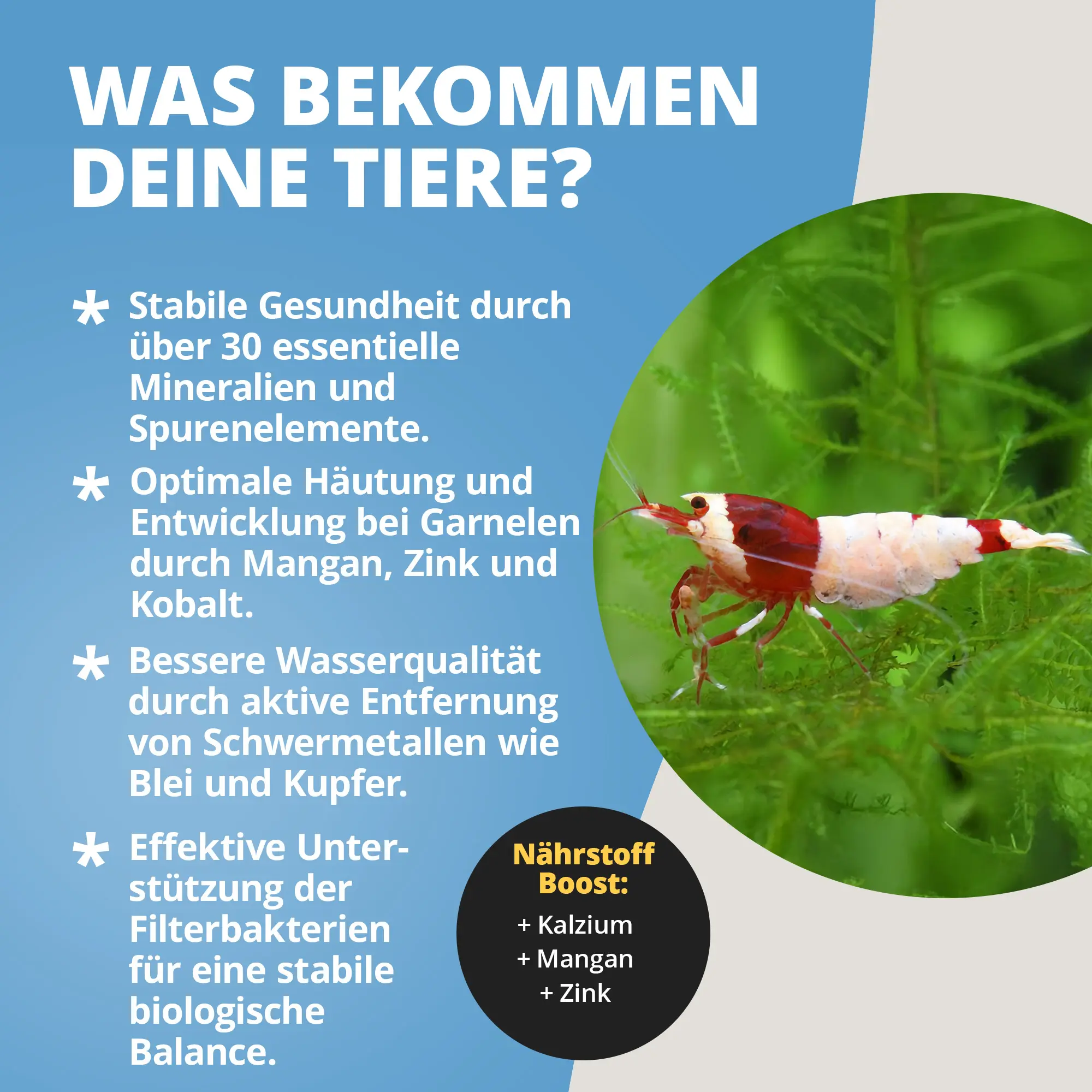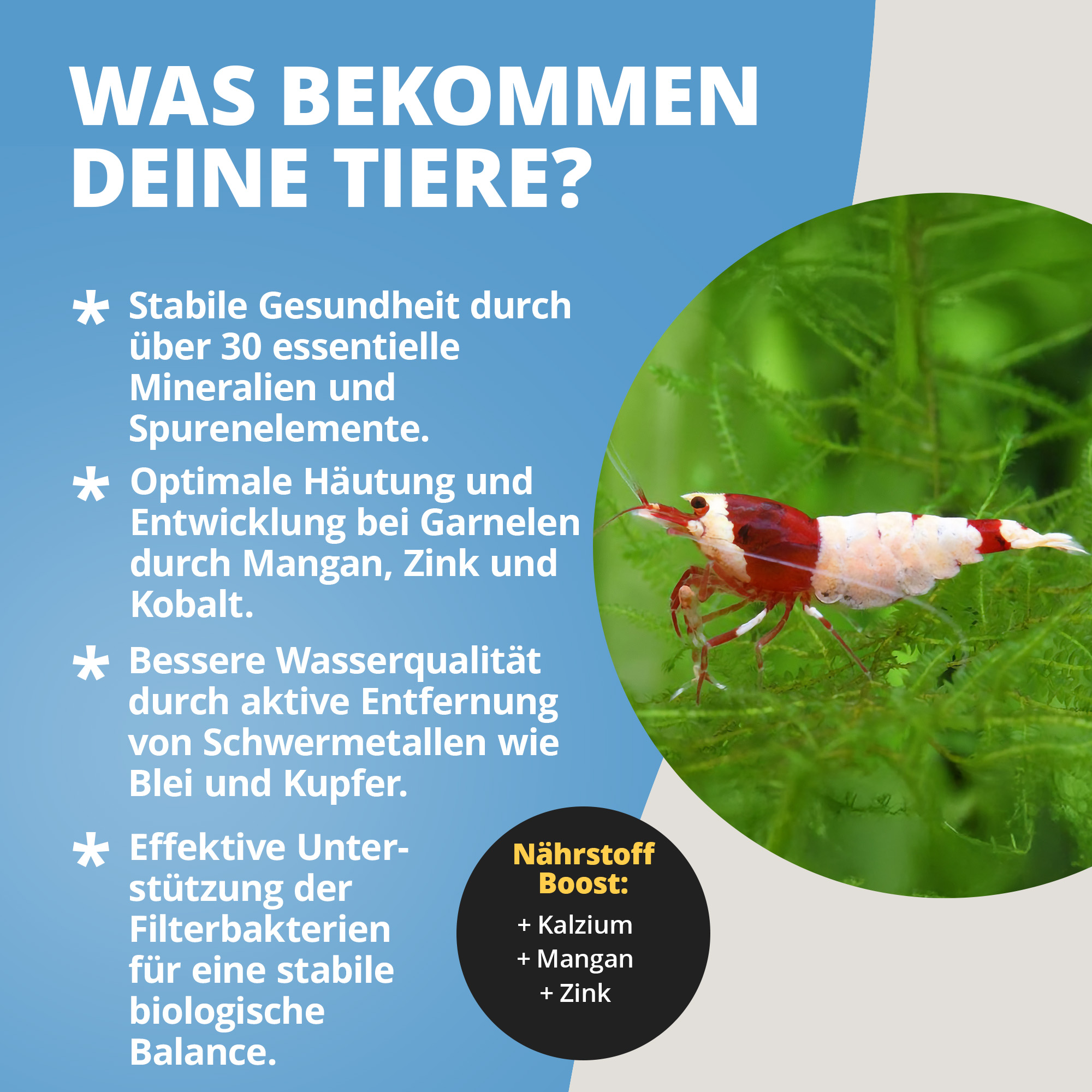 - Unterstützt die Mikrofauna und gesunde Entwicklung aller Wirbellosen und Fische