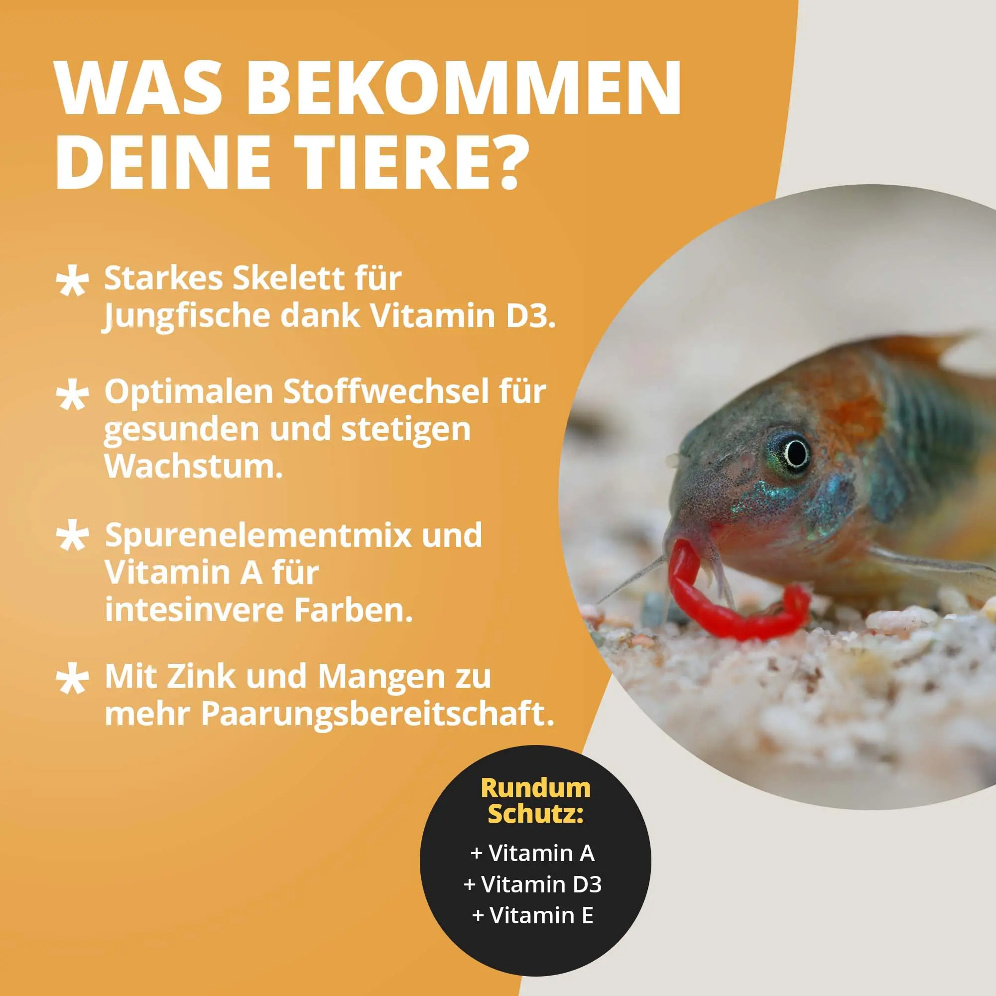 - Für alle Zierfische sowie Garnelen, Schnecken, Krebse und Krabben geeignet