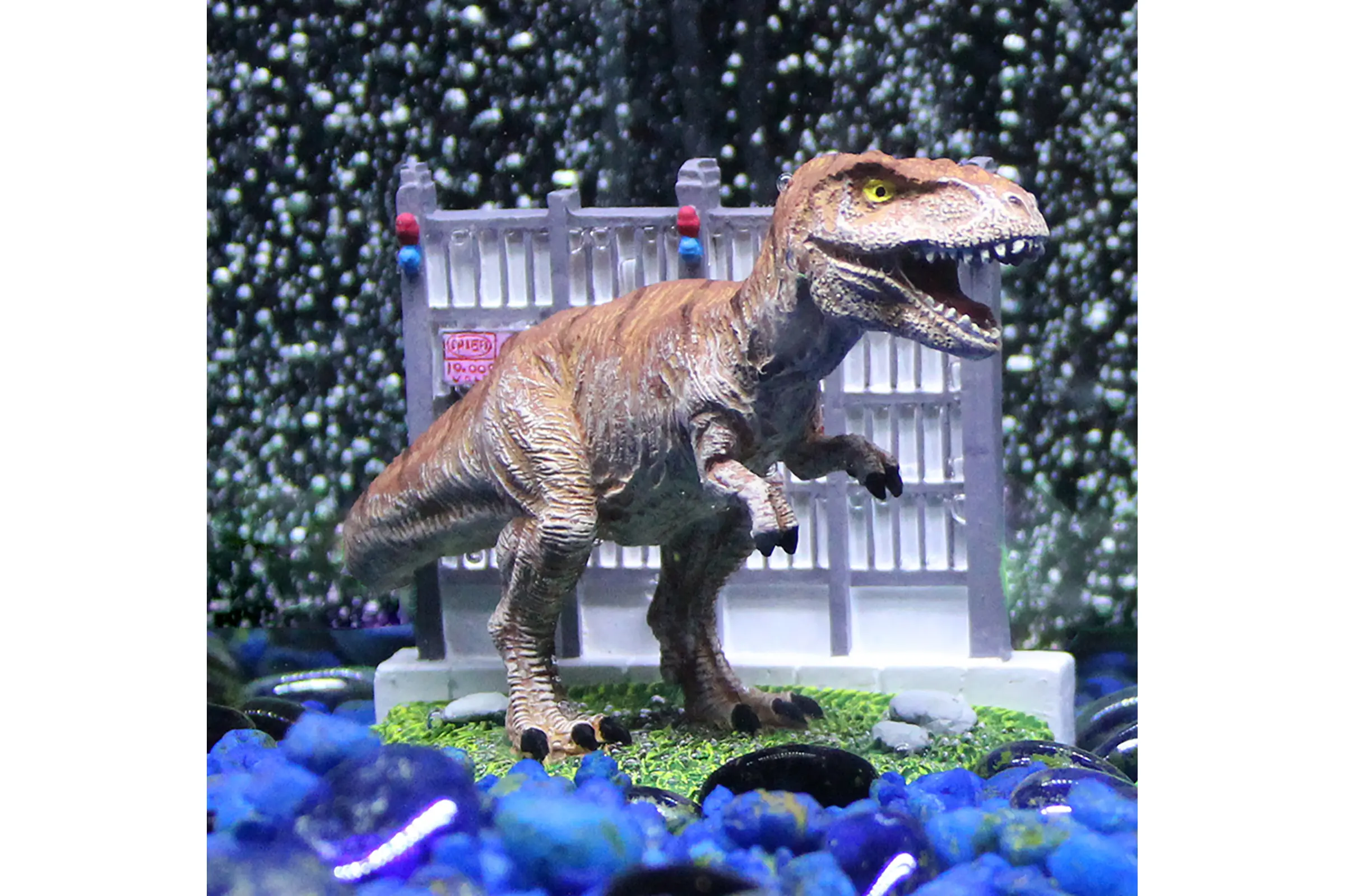 Die T‑Rex‑Figur eignet sich hervorragend für Themen‑Aquarien im Jurassic‑Stil. Platziere sie zwischen Felsstrukturen, künstlichem Grün oder ergänzenden Jurassic‑Dekorationen wie Torelementen oder anderen Dinos. Dank ihrer kompakten Größe (ca. 10 × 7 × 7 cm) passt sie sogar in kleinere Becken oder Garnelenaquarien. Die stabile Resinbasis gewährleistet sicheren Stand – auch bei Reinigung oder Strömung. Ein tolles Detail für alle, die ihrem Aquarium ein cineastisches Abenteuer verleihen wollen. Vor dem Einsetzen sollte die Figur kurz mit klarem, warmem Wasser abgespült werden.