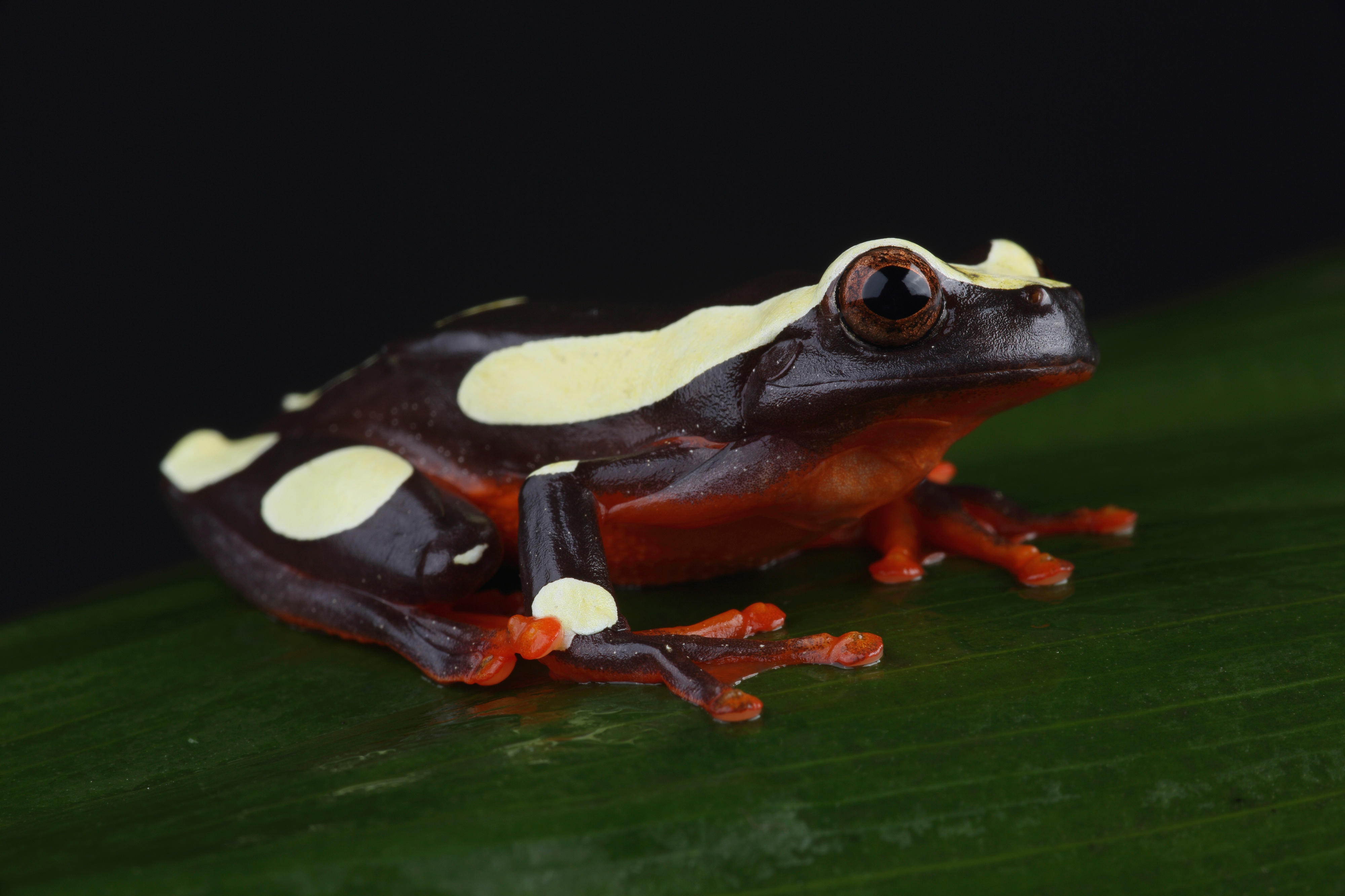 Der Prachtlaubfrosch ist ein typischer Vertreter der feuchtwarmen Regenwälder des Amazonasbeckens. Dort bewohnt er vor allem vegetationsreiche Überschwemmungsgebiete, Waldränder entlang kleiner Tümpel sowie temporäre Wasseransammlungen, die sich während der Regenzeit bilden. Charakteristisch für diese Art ist das enge Zusammenspiel aus Wasser und Vegetation: Tagsüber ruht der kleine Laubfrosch gut verborgen auf Blättern, in dichtem Geäst oder zwischen Pflanzenstängeln, wo ihn seine kontrastreiche Zeichnung erstaunlich gut tarnt. Erst mit einsetzender Dämmerung wird er aktiv, klettert geschickt durch die Vegetation und begibt sich auf Nahrungssuche. Dabei zeigt er ein ruhiges, fast schwebendes Bewegungsmuster, das ihn besonders elegant wirken lässt. In der Fortpflanzungszeit versammeln sich die Tiere in der Nähe von Wasserstellen, wo die Männchen mit leisen, rhythmischen Rufen auf sich aufmerksam machen.