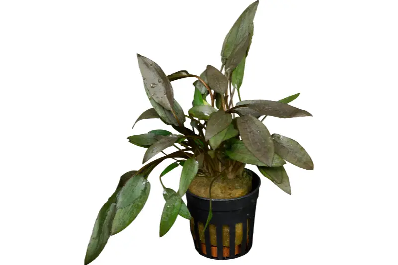 Diese Pflanze erreicht eine Höhe von etwa 10 bis 15 cm und bleibt dabei kompakt. Ihre gedeckten Farben und die charakteristische Blattstruktur machen sie zu einer vielseitigen Wahl für unterschiedlichste Aquarienlayouts.