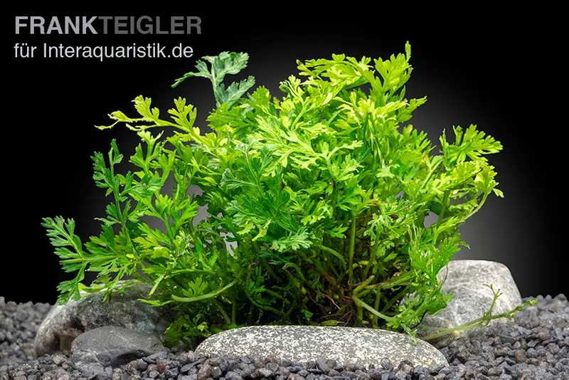 Die Pflanze erreicht eine Höhe von 3 bis 10 cm, wodurch sie perfekt für Nano-Aquarien oder als Vordergrundpflanze geeignet ist. Ihre zarten, gefiederten Blätter verleihen dem Aquarium ein natürliches und elegantes Aussehen.