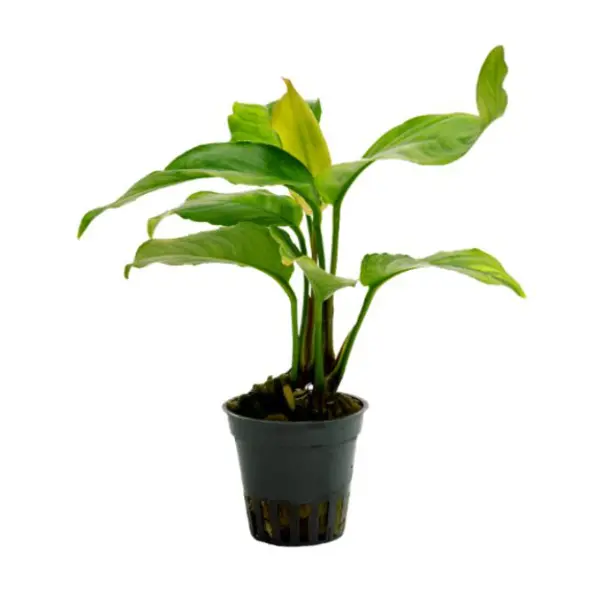 Die Anubias heterophylla wird im 5 cm Topf geliefert. Das Substrat, das die Wurzeln umgibt, sollte vor dem Einpflanzen vorsichtig entfernt werden. Dadurch kann die Pflanze optimal anwachsen und sich schnell im Aquarium etablieren.