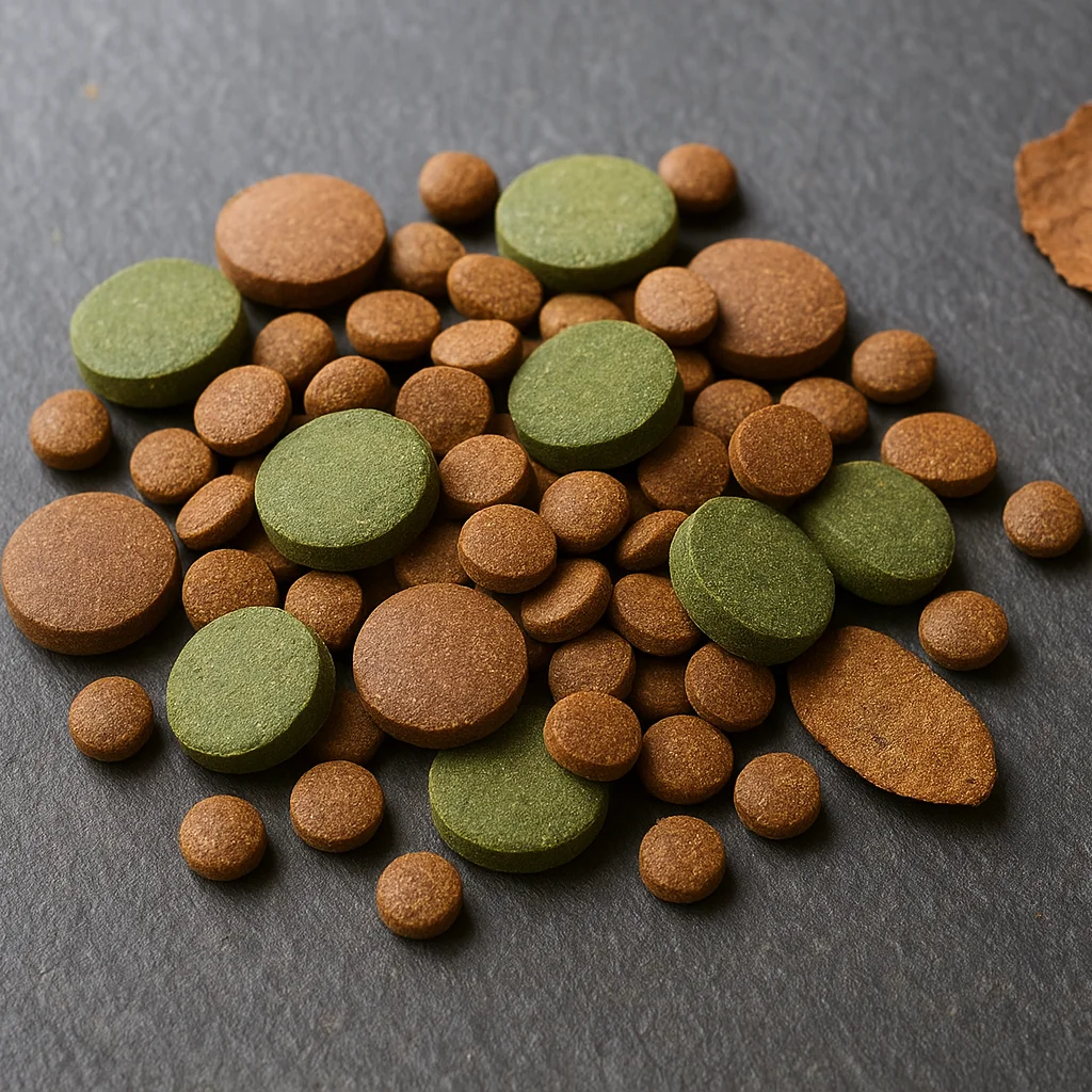 Abschließend besteht natürlich noch die Möglichkeit, Ihre Tiere mit pflanzlichen Nahrungsmitteln zu versorgen, die sich auch in Ihrem Speiseplan wiederfinden. Eine Option wären Salat- oder Spinatblätter, Karotten- oder Gurkenscheiben. Was genau Sie jetzt ins Becken geben, ist natürlich von den Bedürfnissen und der Größe Ihrer Tiere abhängig. Viele natürliche Produkte bieten wir Ihnen in Stickform, als Tabs oder als praktische Flocken an. Auch Laub wie z.B. Walnussblätter finden Sie in unserem Sortiment.