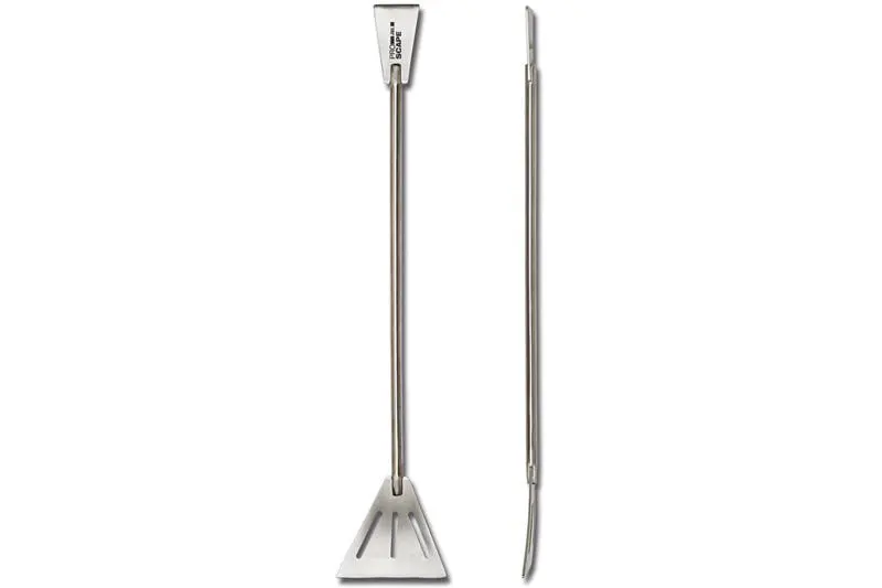 Der Bodenglätter kann beidseitig verwendet werden, er verfügt über 2 unterschiedliche Spatelbreiten von 62 mm bzw. 25 mm. Durch die Verwendung von hochwertigem Japanstahl ist der Kiesspatel nicht nur sehr leicht sondern auch Rostfrei.