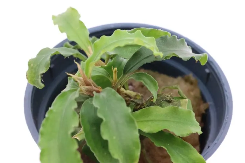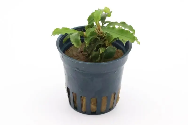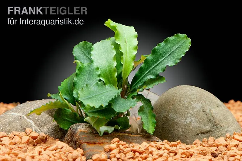 Die Aquarienpflanze wird als kräftiges Exemplar im 5 cm-Topf geliefert. Das Rhizom ist zum Schutz während des Transports in Steinwolle eingebettet. Diese sollte vor dem Einsetzen vollständig entfernt werden. Danach ist die Pflanze gründlich mit Wasser abzuspülen und vorsichtig in Teilstücke zu zerteilen. Das Rhizom wird anschließend auf Wurzelholz oder Stein aufgebunden oder mit Draht bzw. Aquarienkleber fixiert.
