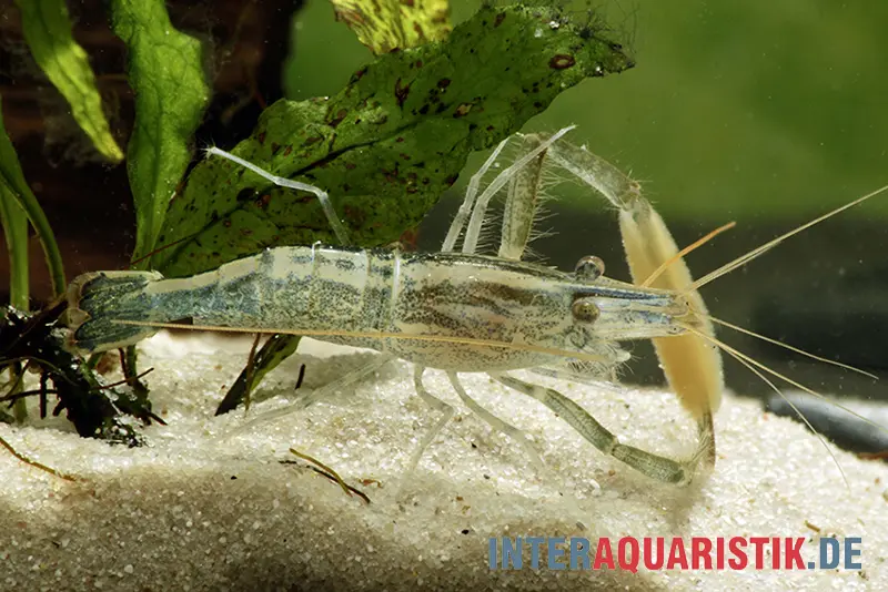 Ein Aquarium ab 100 cm Länge bietet dieser Garnele ausreichend Platz. Der Bodengrund sollte aus feinem Sand oder Kies bestehen, während zahlreiche Versteckmöglichkeiten wie Steine, Wurzeln und Höhlen zur Stressreduktion beitragen.