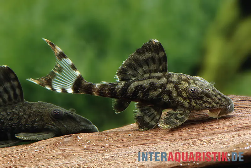 L203 ist ein echter Holzfresser – weiches Wurzelholz (z. B. Moorkien) muss dauerhaft verfügbar sein. Ergänzend nimmt er überbrühtes Gemüse wie Zucchini oder Kürbis, faserreiche Pellets und pflanzliche Welsfutter. Eiweißreiche Nahrung oder fleischliche Kost sollte vermieden werden. Eine ballaststoffreiche, pflanzlich orientierte Ernährung ist essenziell für eine gesunde Verdauung.