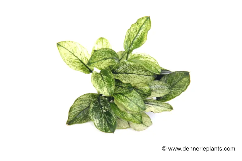 Das Gescheckte Zwergspeerblatt erreicht eine maximale Höhe von 5 bis 15 cm. Durch ihre kompakte Größe und die auffällige Blattzeichnung ist sie ideal für kleine bis mittelgroße Aquarien.