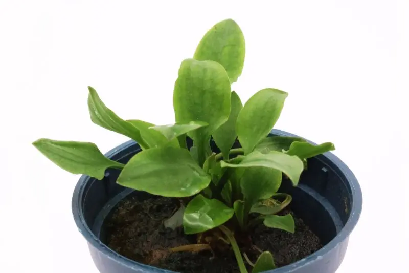 Hobbit-Wasserkelch, Cryptocoryne lutea "Hobbit", im Topf