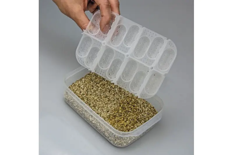 Tipp: Wird die Easy Breeder Box in einem Umluft geführten Inkubator (z.B. dem HOBBY Easy Breeder) eingesetzt, empfiehlt es sich die Box durch einige kleine Löcher im Deckel zusätzlich zu belüften, so erzielt man ein bestmögliches Ergebnis.