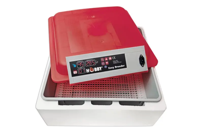 Der Easy Breeder kann für bis zu 18 Inkubationsbehälter in der Größe von Heimchen-Boxen auf zwei Ebenen verwendet werden. Der integrierte digitale Temperaturregler hat eine Genauigkeit von 0,1° C, einen Regelbereich von 20 - 39,5° C, eine Alarmfunktion von 1 - 15° C und einen Memorychip gegen Datenverlust bei Stromausfall. Ausgestattet ist der Easy Breeder mit einer modernen 80 W Heiz-Lüftungs-Kombination. Diese ermöglicht es, die Eier bei kaum schwankenden Temperaturen auf zwei Ebenen zu inkubieren und sorgt für eine erstklassige Schlupfrate. Die 7 Wasserrinnen für die Feuchtigkeitsregulierung sorgen für genügend Luftfeuchtigkeit während der Brut- und Schlupfphase.