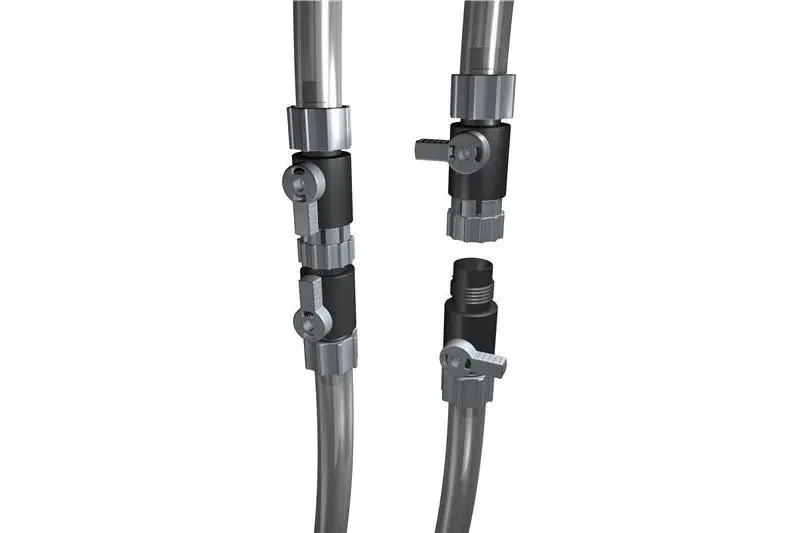- Eine Schnelltrennkupplung hilft, wenn technische Geräte wie z. B. Außenfilter, von am Aquarium montierten Schläuchen getrennt werden sollen, um sie zu reinigen