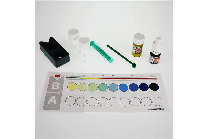 - Einfache und sichere Kontrolle der Wasserwerte Ihres Koiteich: Bestimmung des Algennährstoffs Phosphat von <0,1 bis zu 10 mg/l