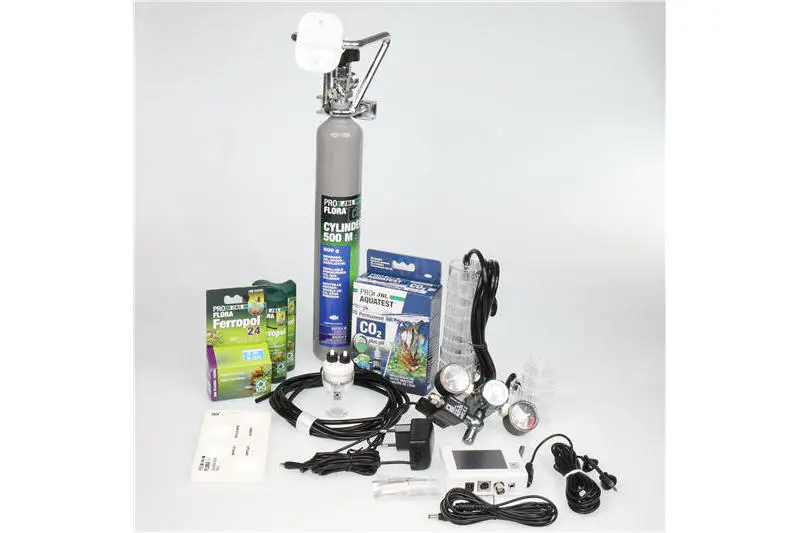- Lieferumfang: 500 g Mehrweg CO2-Flasche & Wandhalterung, Druckminderer mit Magnetventil, CO2/pH-Computer, 3 m Schlauch, Blasenzähler mit Rückschlagventil, TAIFUN CO2 Reaktor + Erweiterungsset, 2x Pflanzendünger 100 ml, 1x Tagesdünger 10 ml