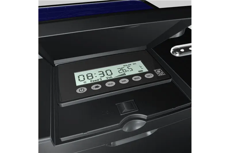 - Wassertemperatur (wichtig für die Futtersorte) wird über enthaltenen Temperaturfühler im digitalen Display angezeigt